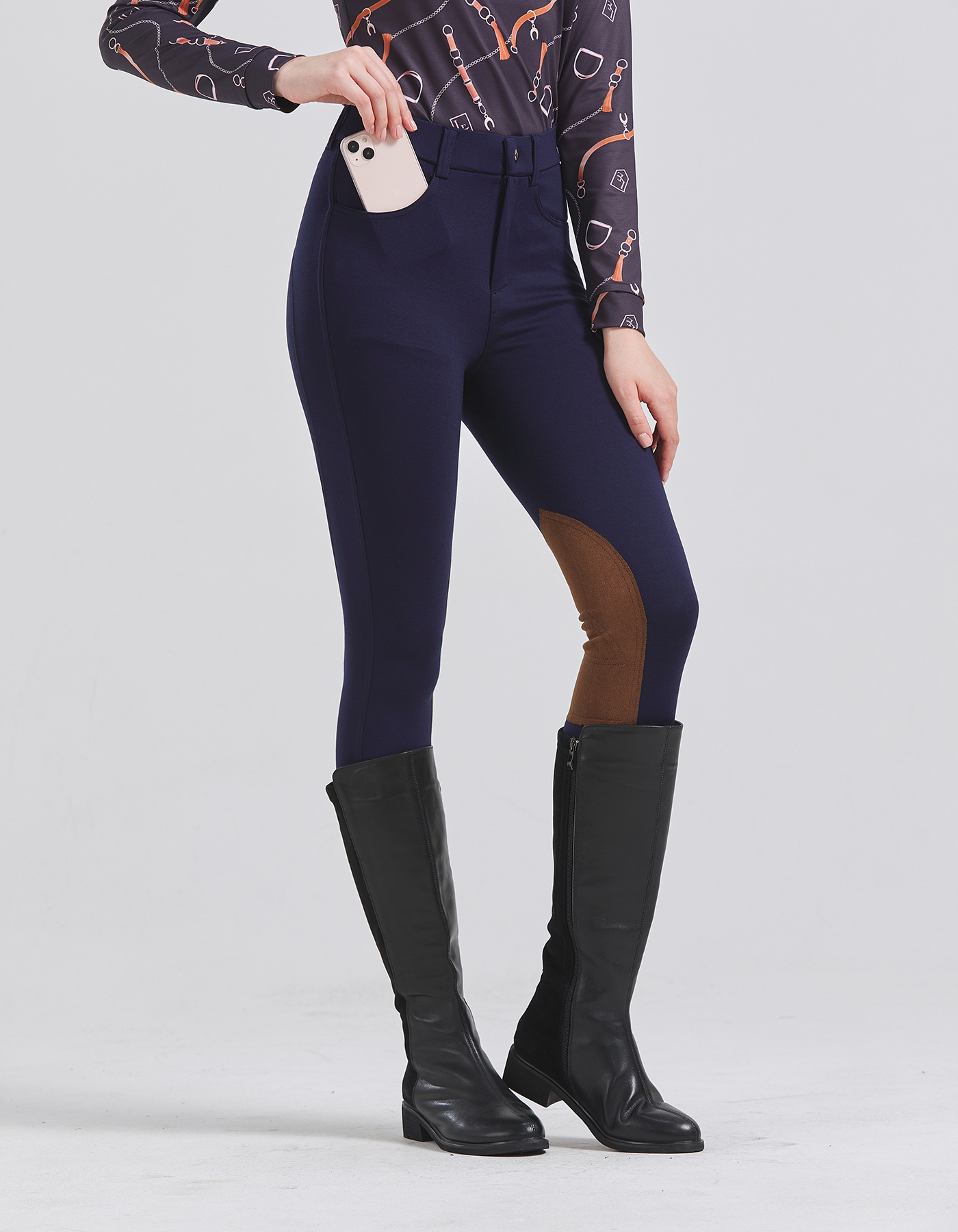 ハイウエストで着痩せ効果のある、四季対応の速乾性乗馬パンツ。耐摩耗性、滑り止め、通気性、伸縮性に優れ、男女兼用、子供用にも。