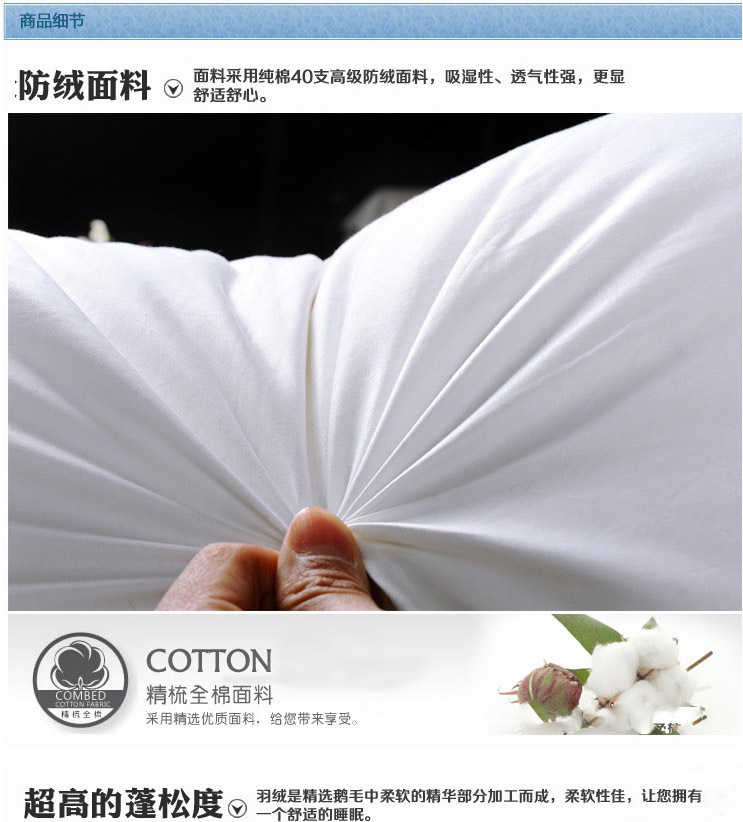 5つ星のホテルのホテルのダウン枕の白いアヒルのガチョウの羽の枕の枕の柔らかい枕の1人の保健