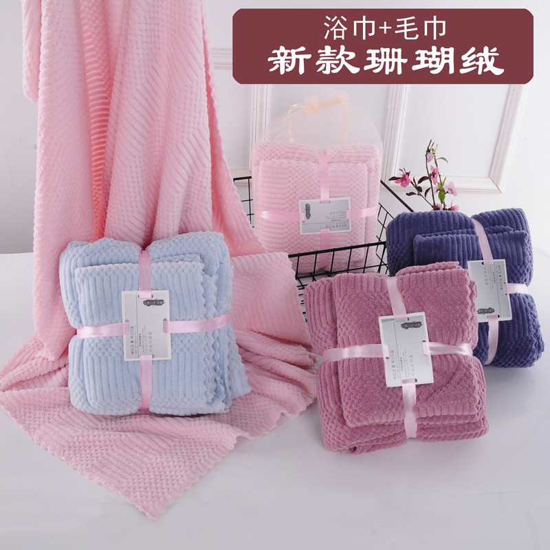 現物卸売りサンゴベルベットタオルバスタオルセット子母セットサンゴベルベットの縁切りバスタオル吸水タオル