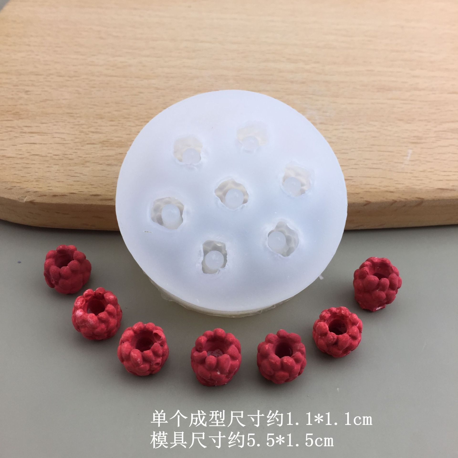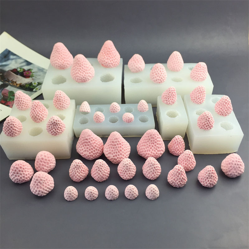 总模具尺寸约:草莓带叶7.5*6.5*1.5CM 三颗小草莓5.5*5.5*1.1CM 两颗带叶草莓9*6.8*1.6CM 四颗大草莓7*7*3.5CM 单颗大草莓5.6*5.6*4.6CM 四颗小草莓5*4.7*2.4CM 超大号草莓8*8*8CM 带叶超大号草莓8.2*8.2*7.2CM/7.1*7.1*1.5CM