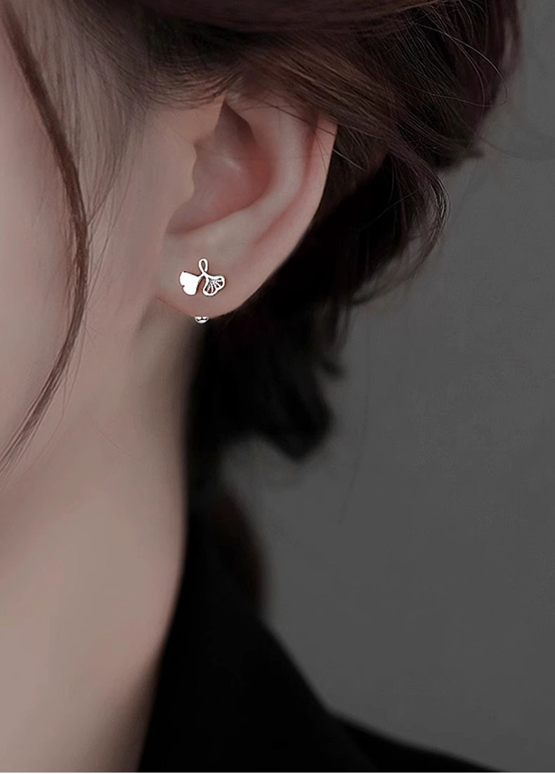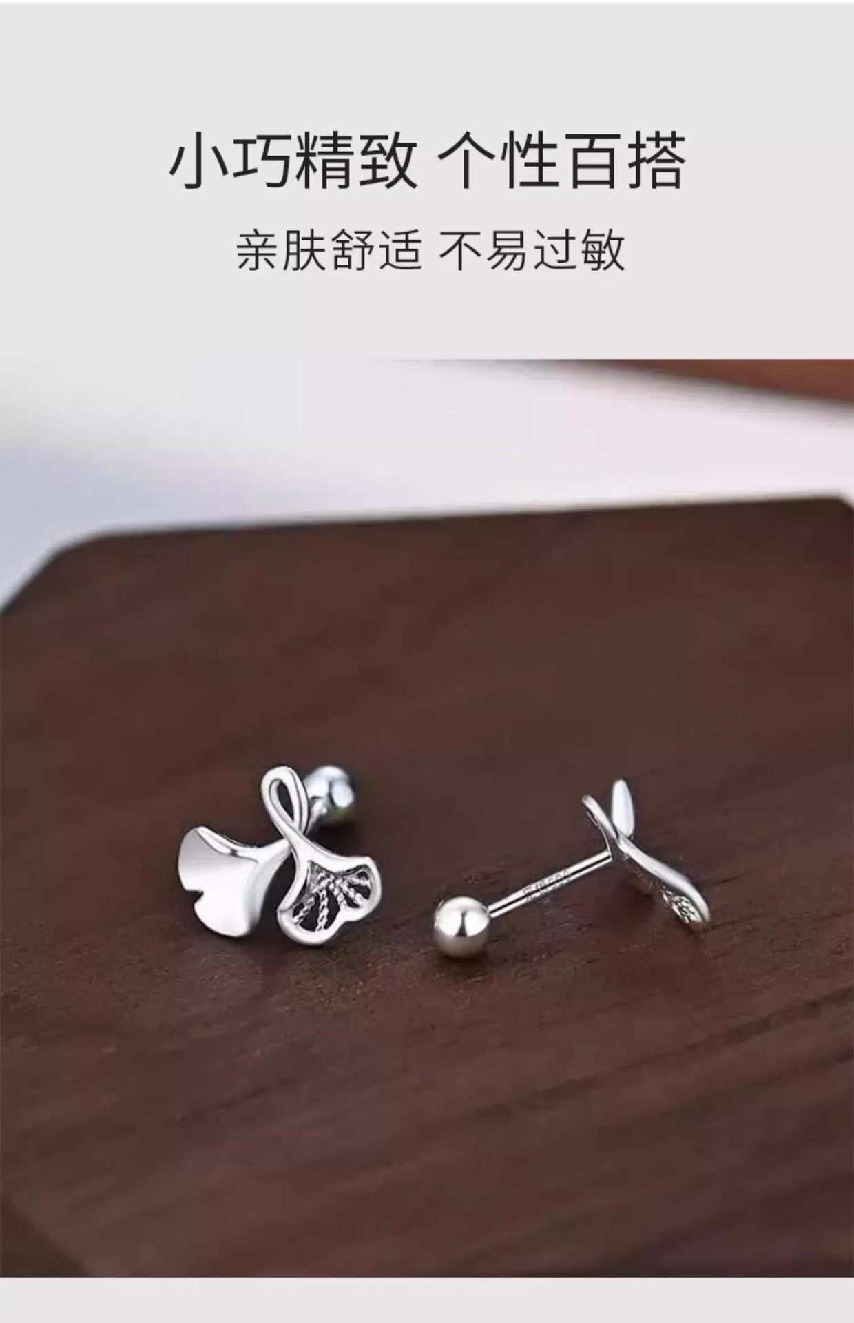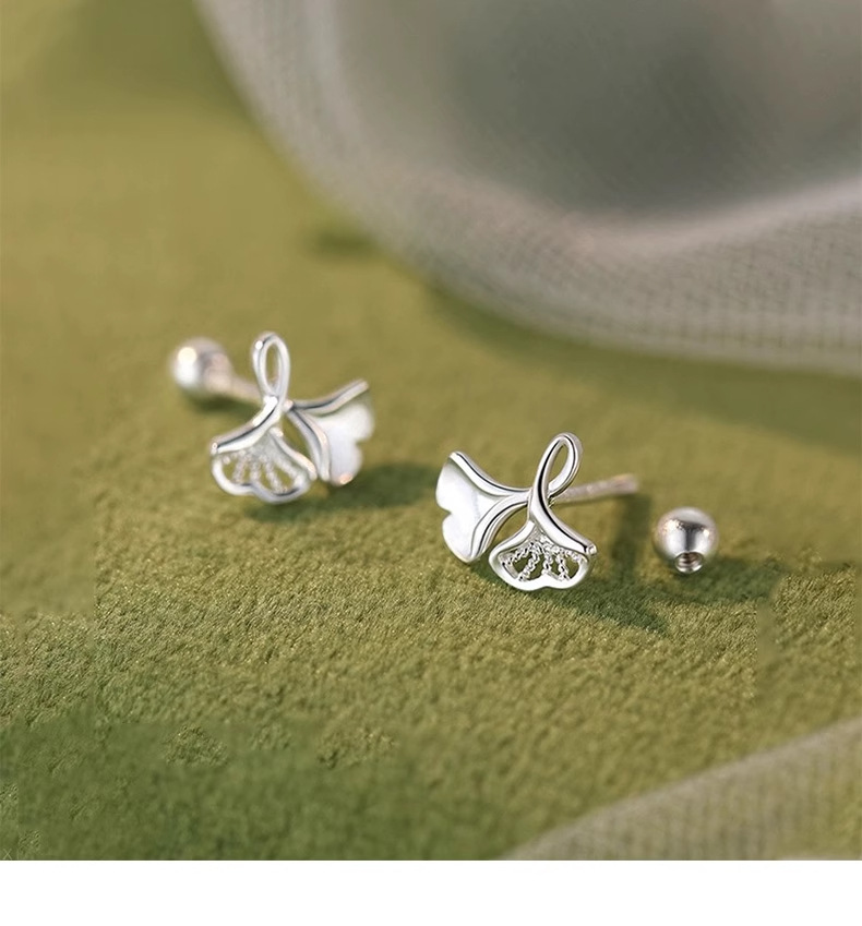 990足の銀のピアスの女性の純銀の耳の穴の耳飾りの杏の葉のねじは締めます。