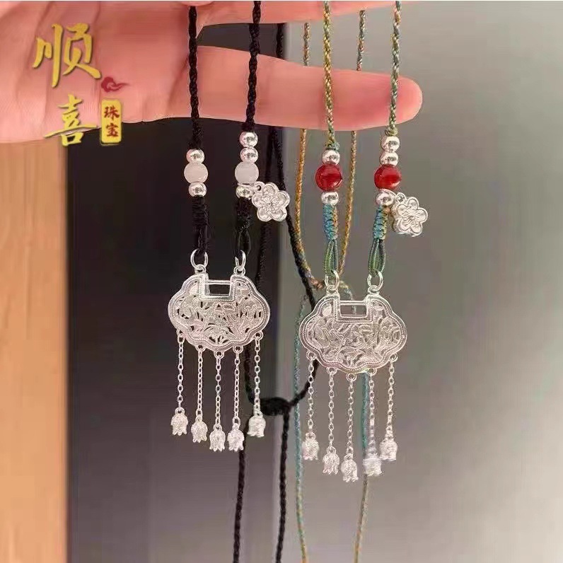 足銀999天子門生龍鳳ペンダント古法花糸流蘇鎖包長命鎖直播起爆金