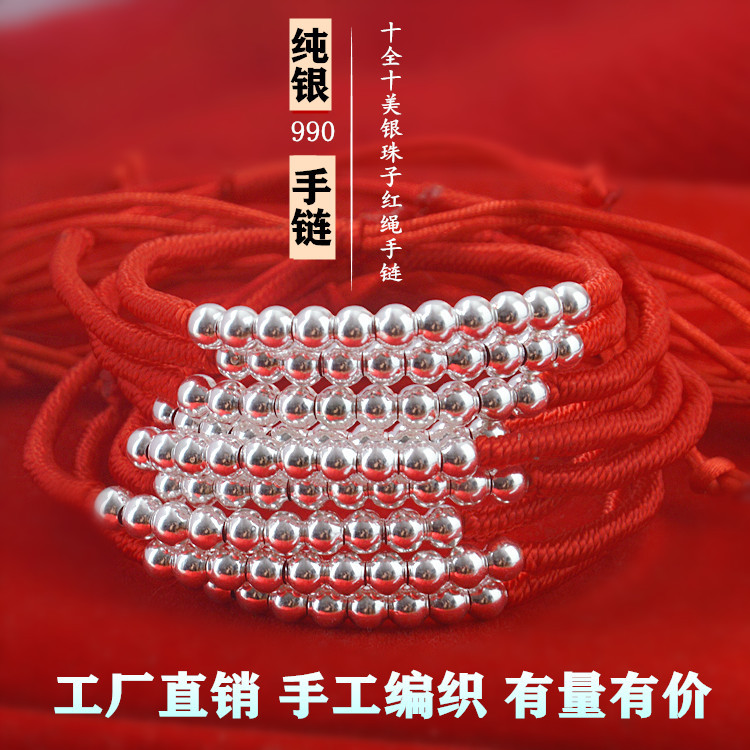 十全十美S990純銀の玉の赤い縄のブレスレットの手編みの小さい銀の玉は金の店の銀の装飾の贈り物を運びます。