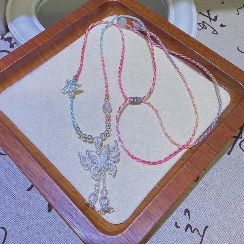 足銀999蝶流蘇ペンダント純銀鈴蘭手作りロープネックレス新中国式生放送爆金卸売り