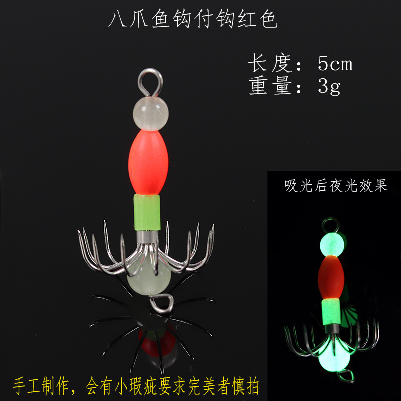 八帯魚副フック八爪イカフック夜光蛍光ビーズタコフック