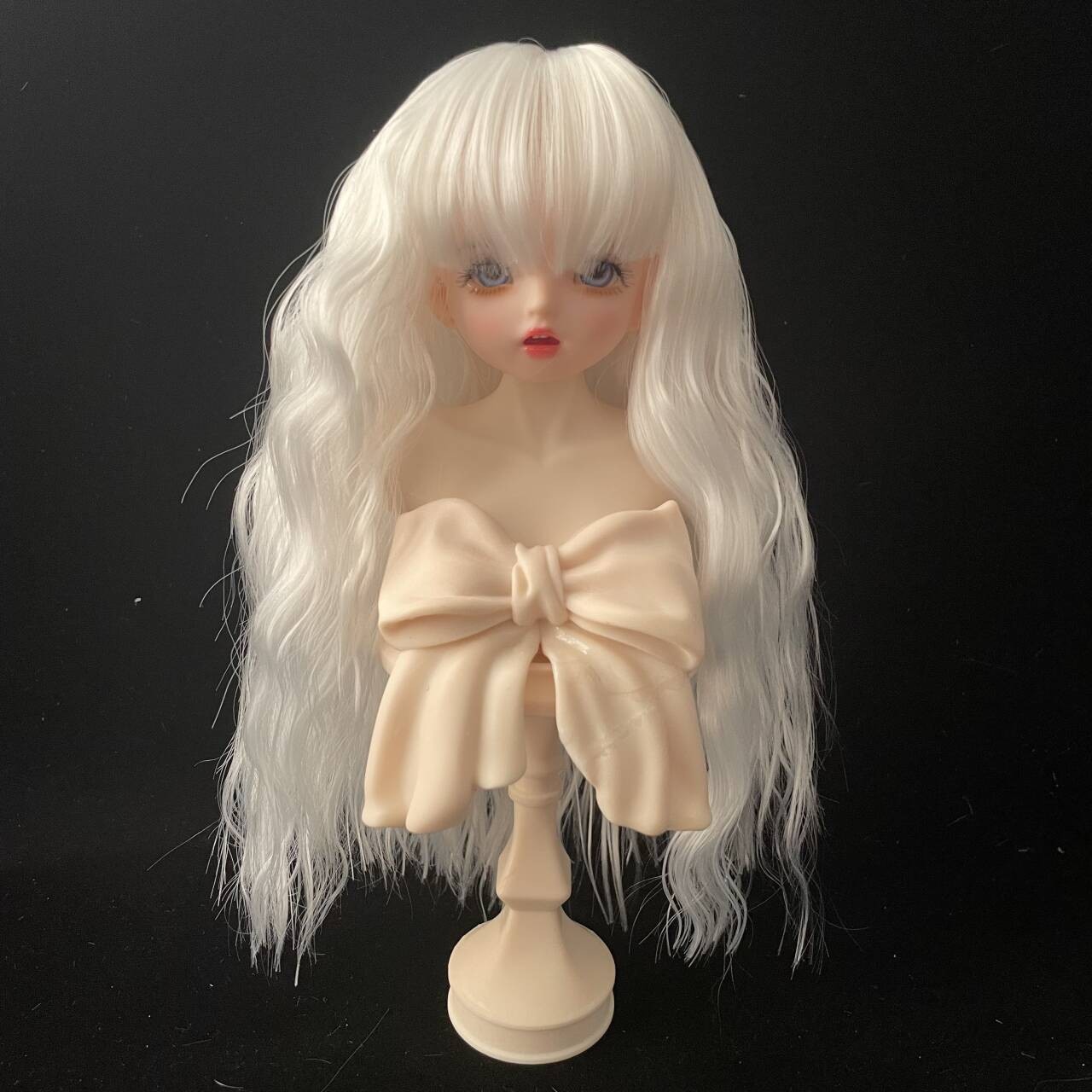 新しいBJDかつら人形用柔らかいシルクカラーの前髪の長い巻き髪3分6分sd人形髪アニメかつら
