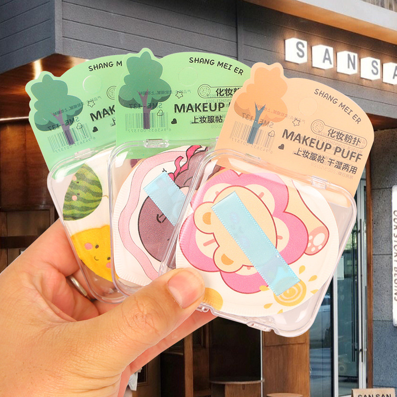 かわいい漫画パウダーパフ kT 猫メロディーマシュマロ収納ボックス付きエアクッションパウダーパフはパウダーを食べず、ウェットとドライで使用できます
