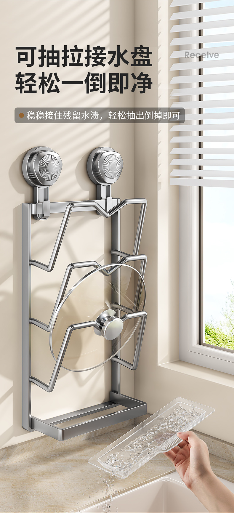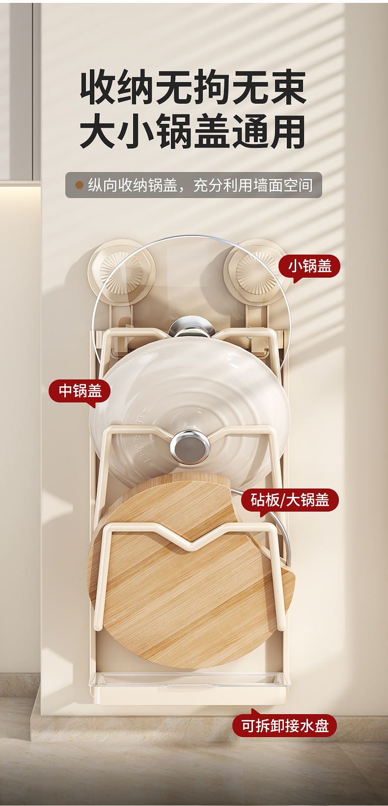 吸盘锅盖架壁挂免打孔厨房置物架多功能家用收纳菜板放置器砧板架