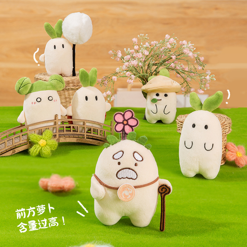 Wai Guaguaが制作した、桃源の奥深くに住んでいる家族、かわいい大根のぬいぐるみペンダント、かわいい周辺人形