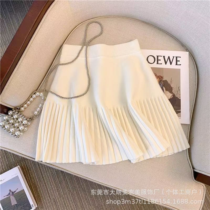 純欲風百タックニットグレースカート女性は春に新型減齢高腰スカートa字スカート韓系を着ます。