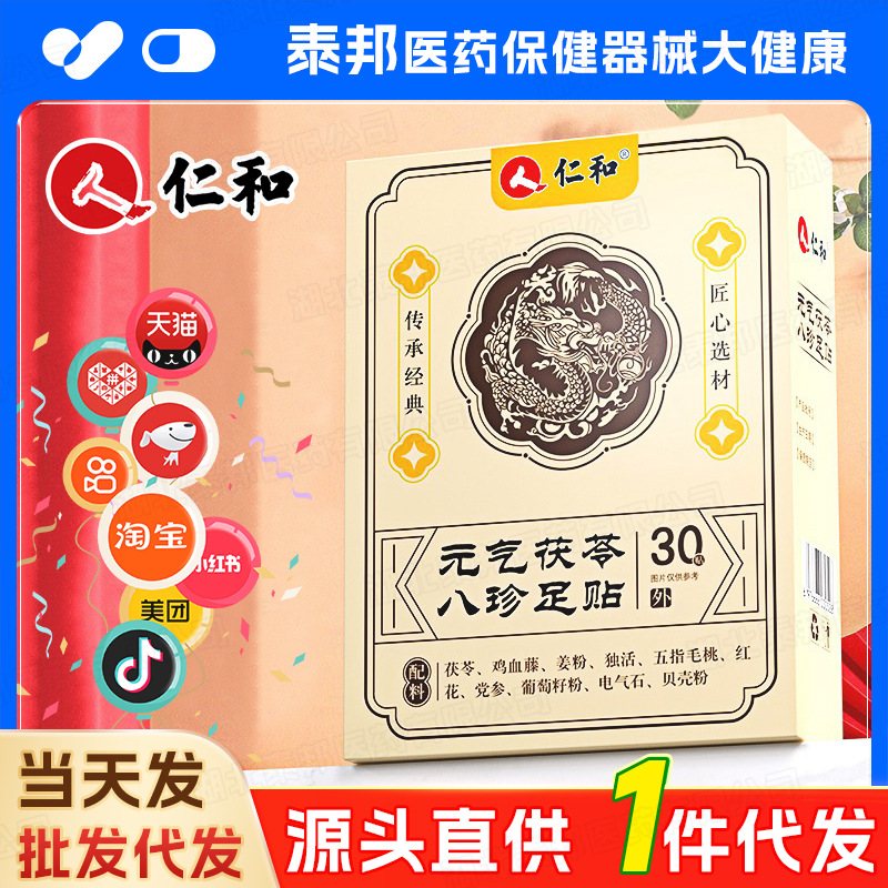 【一件代发】仁和元气茯苓八珍足贴30贴脚贴保健植物草本精粹萃取
