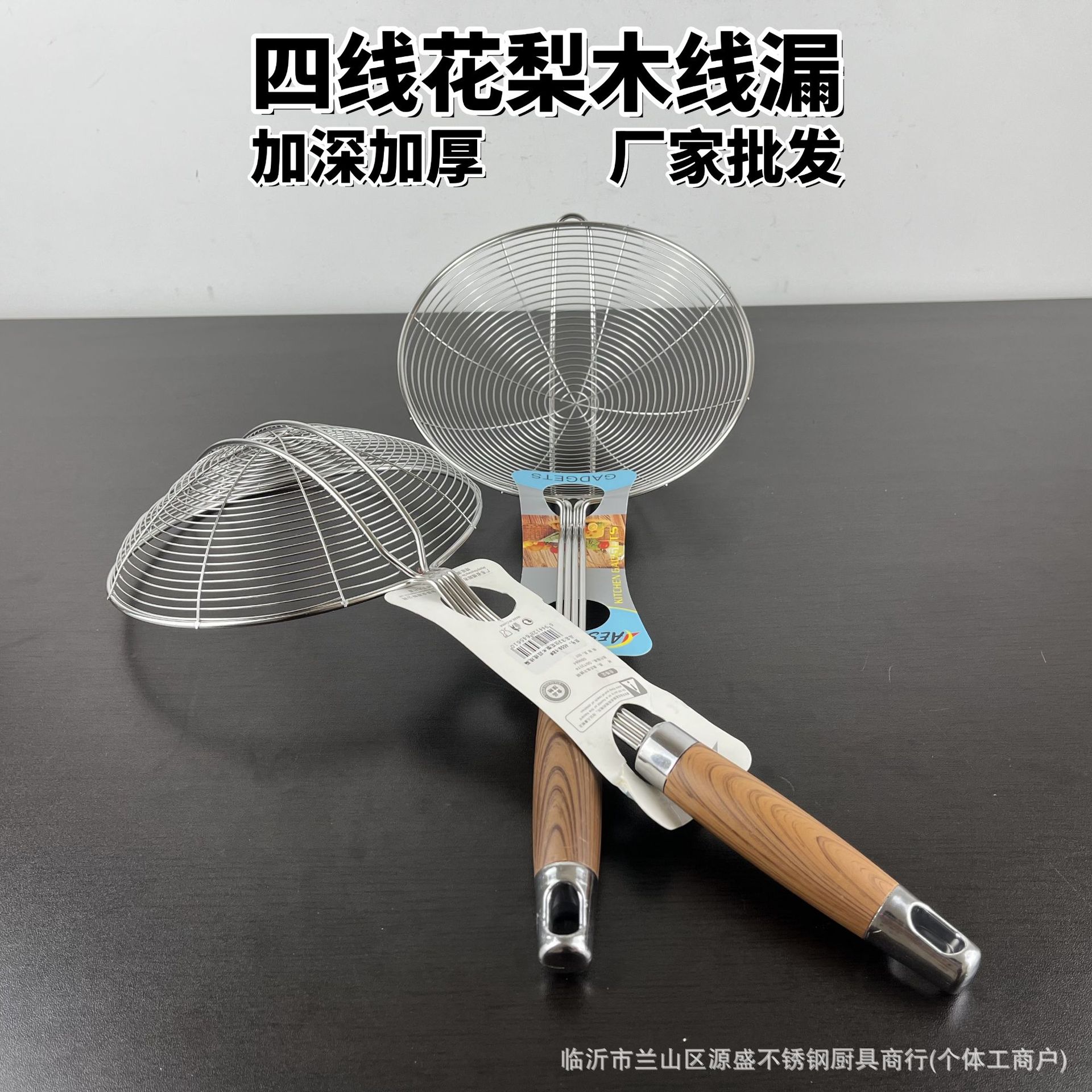 18cm四线小蛮腰木柄线漏捞勺厨房用具可挂式线漏火锅油炸过滤网漏