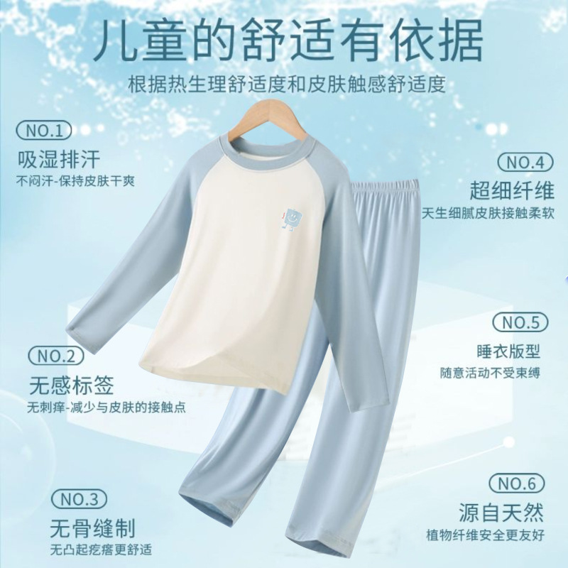 子供のモーデールの部屋服の長袖は男女の子供のパジャマの春夏のタイプの丸首のエアコンの服のスーツをつなぎ合わせて外に着ることができます。