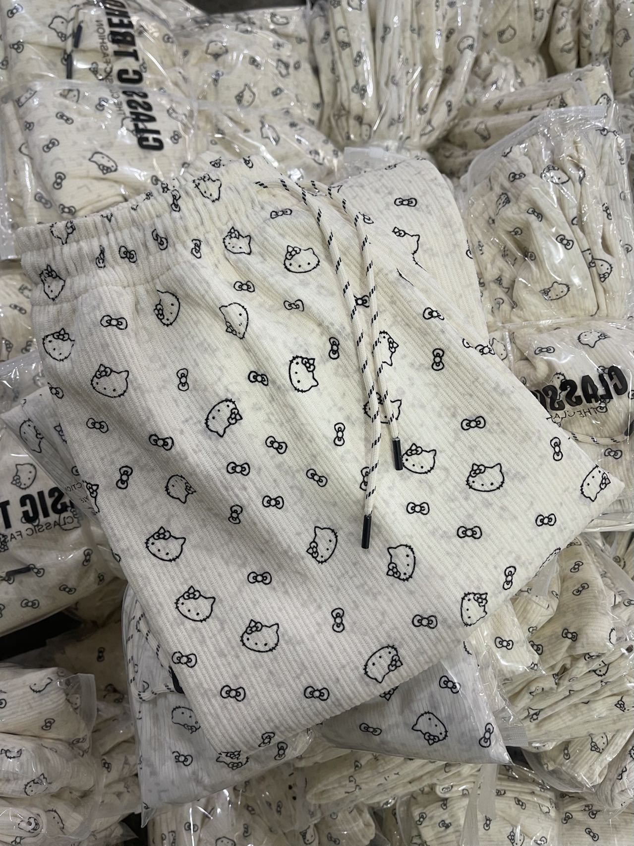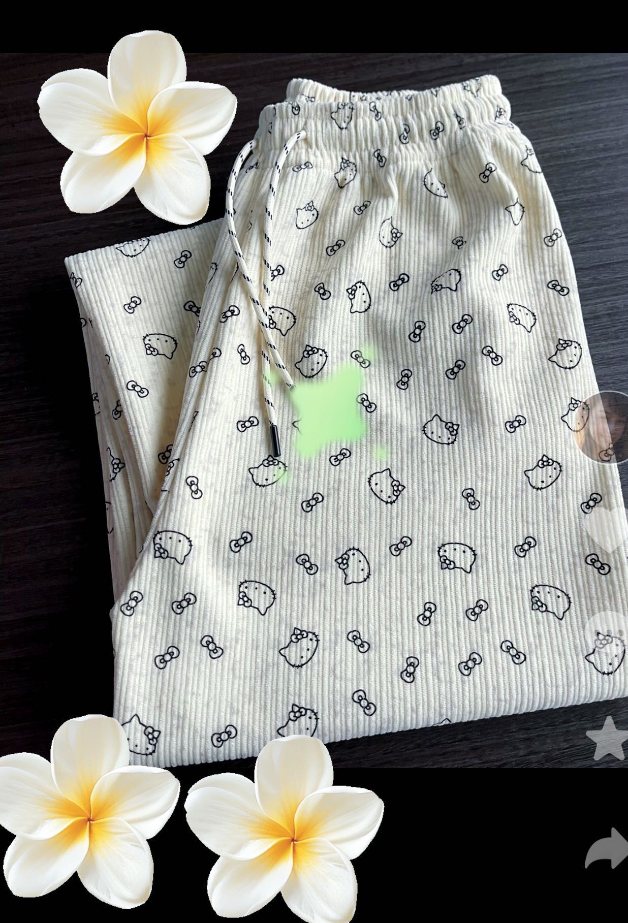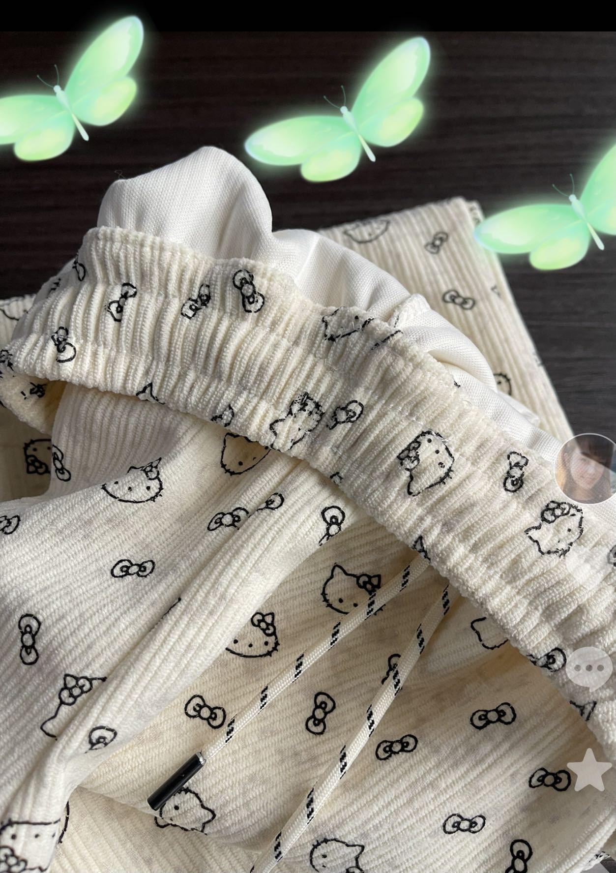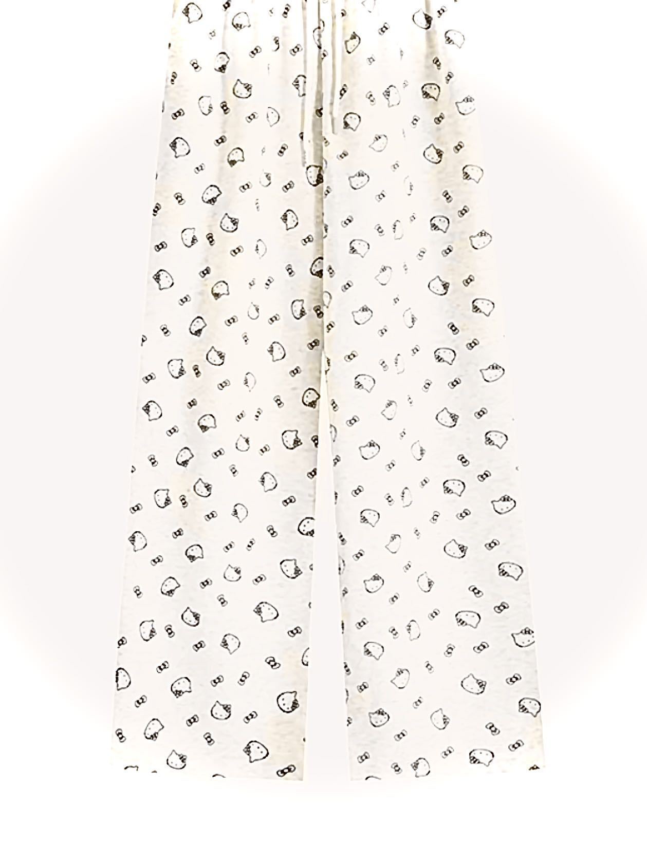 レトロな漫画の猫のプリントのズボンの少女の春夏の怠惰な弛緩感のワイドレギンスのズボンは腰のまっすぐなカジュアルなズボンを緩めます。