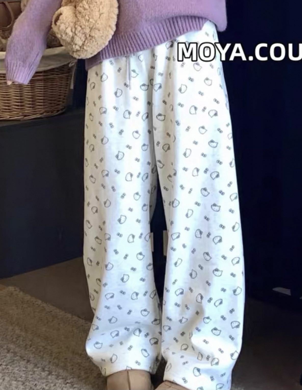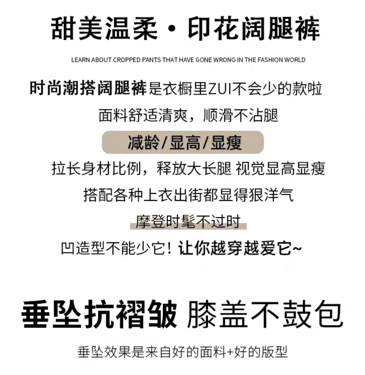 腰果花印花阔腿裤女秋冬款宽松百搭糯米绒豹纹休闲直筒高腰阔腿裤
