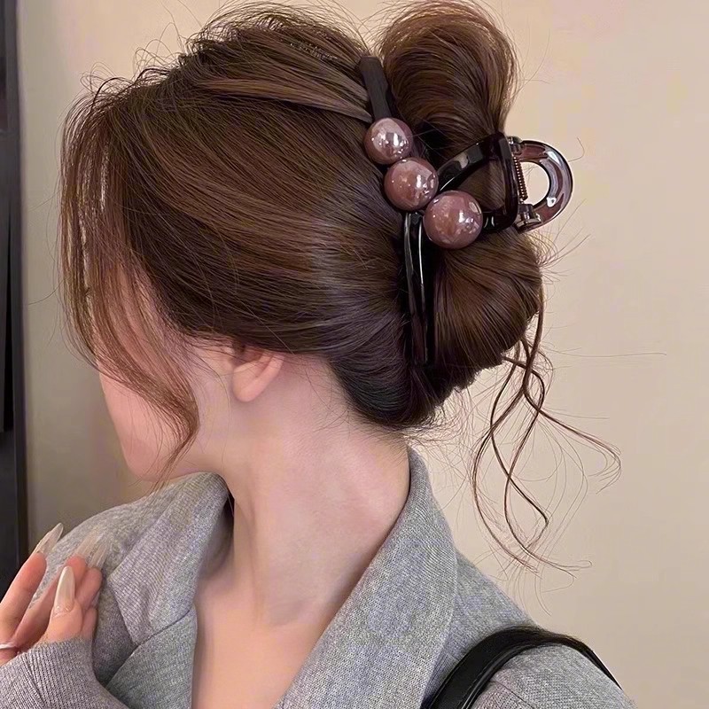 シンプルな大型パールツイストクリップ2025新作後頭部ヘアクリップ高級感のあるエレガントなワンワードクリップヘアアクセサリー