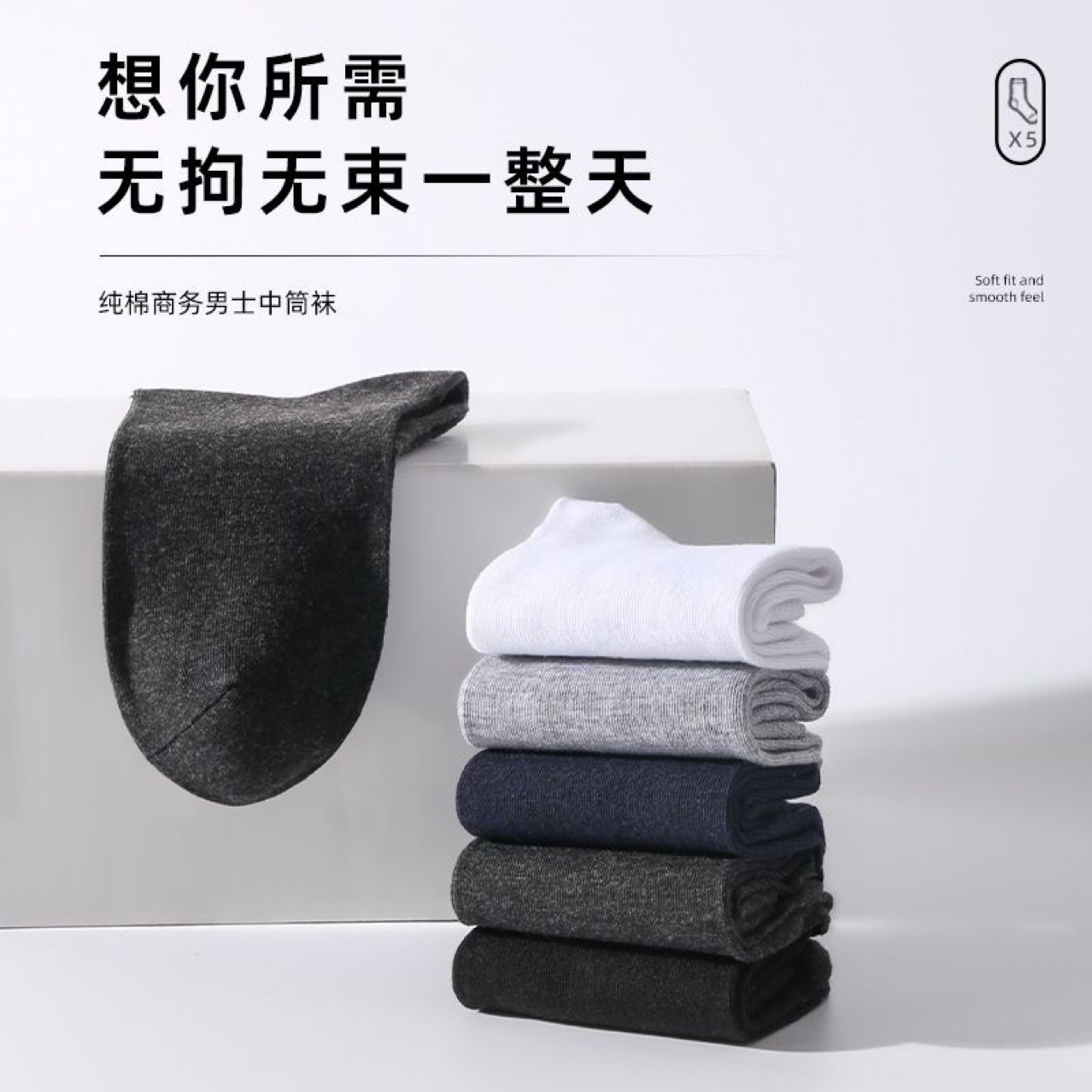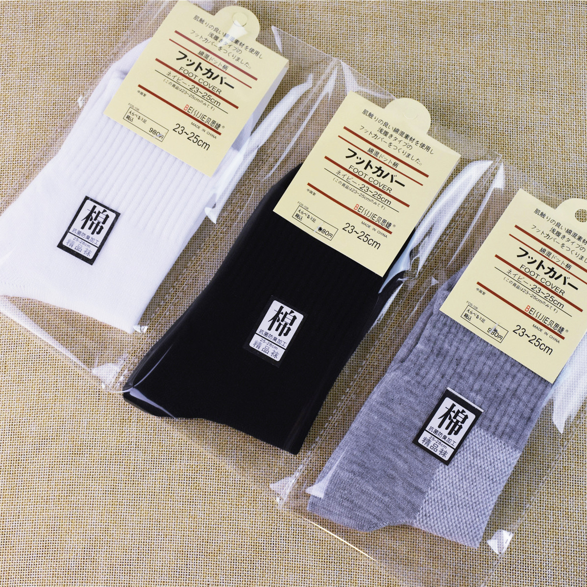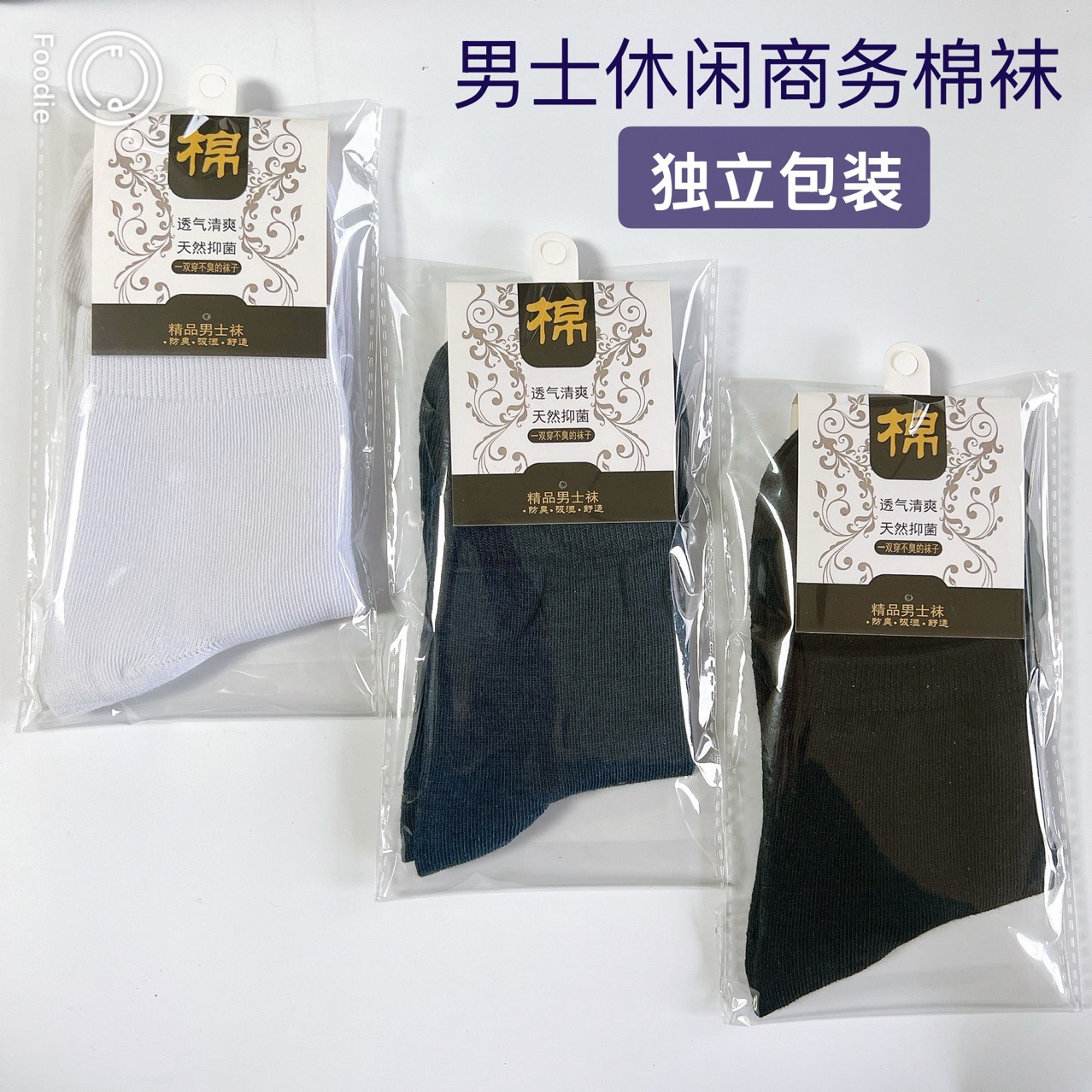 男棉袜独立包装中筒袜纯色足浴袜经典透气男棉袜子货源