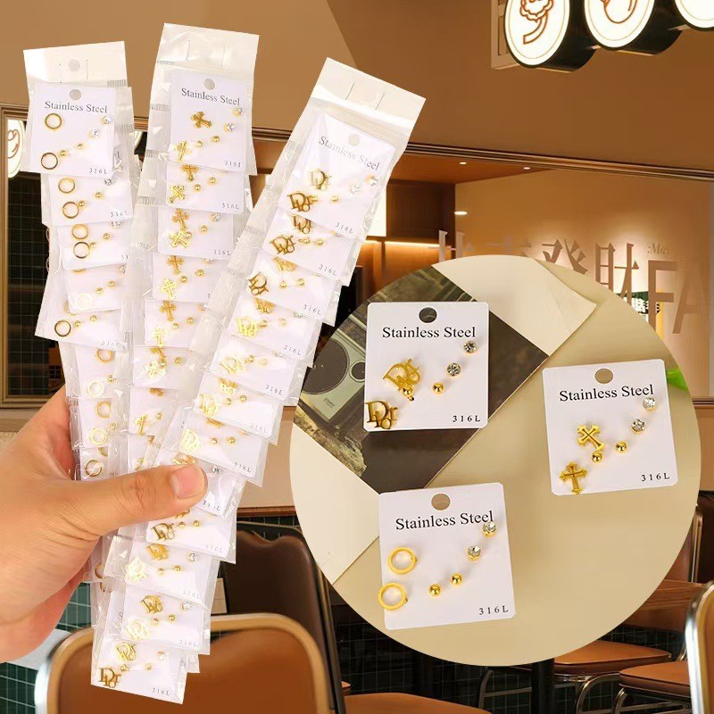 保色鋼釘ピアス三対セット一週間イヤリングセットイヤリングプレゼント耳飾り誕生日プレゼント女の子の親友