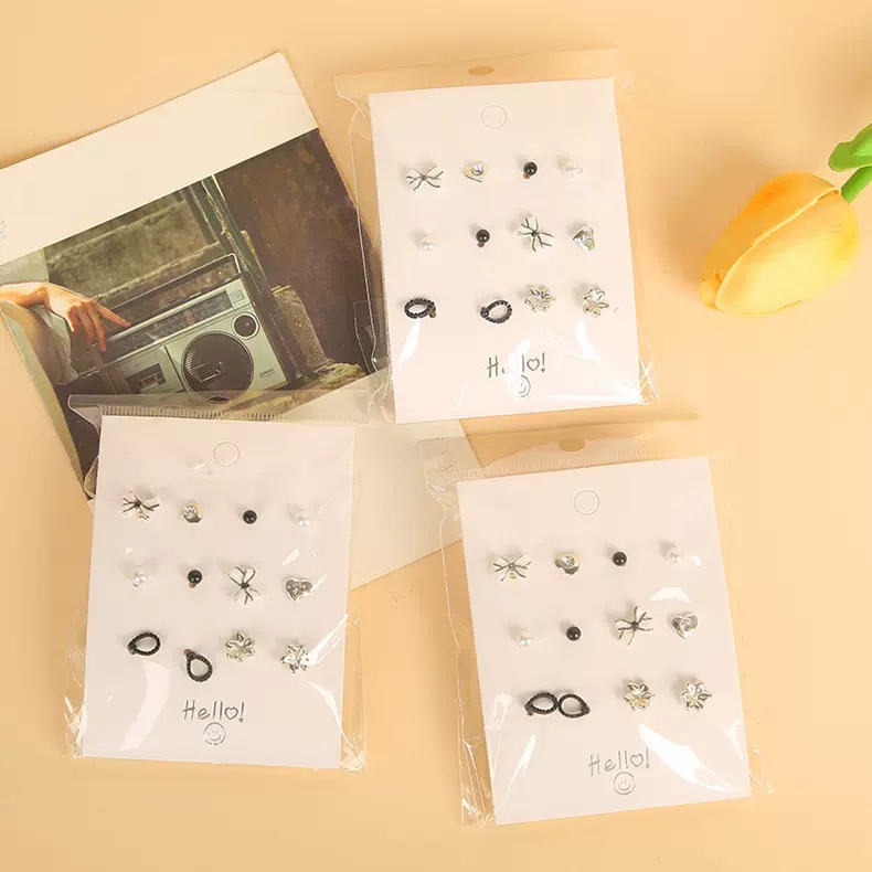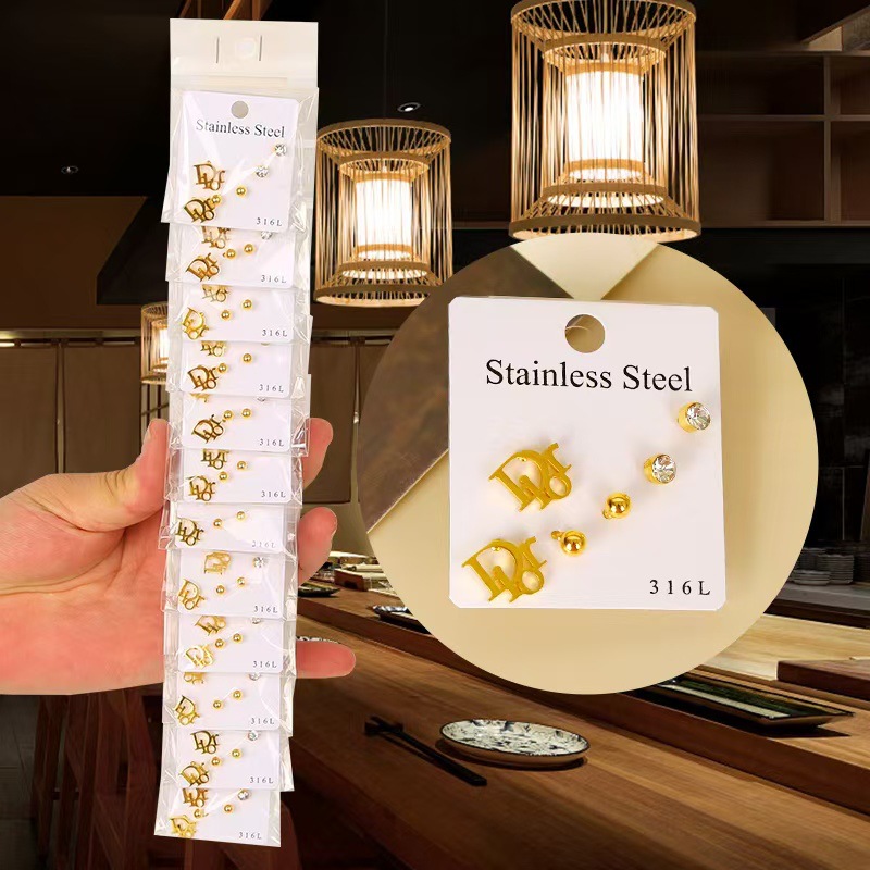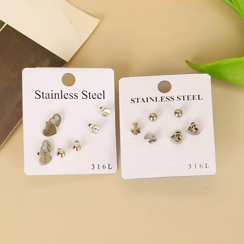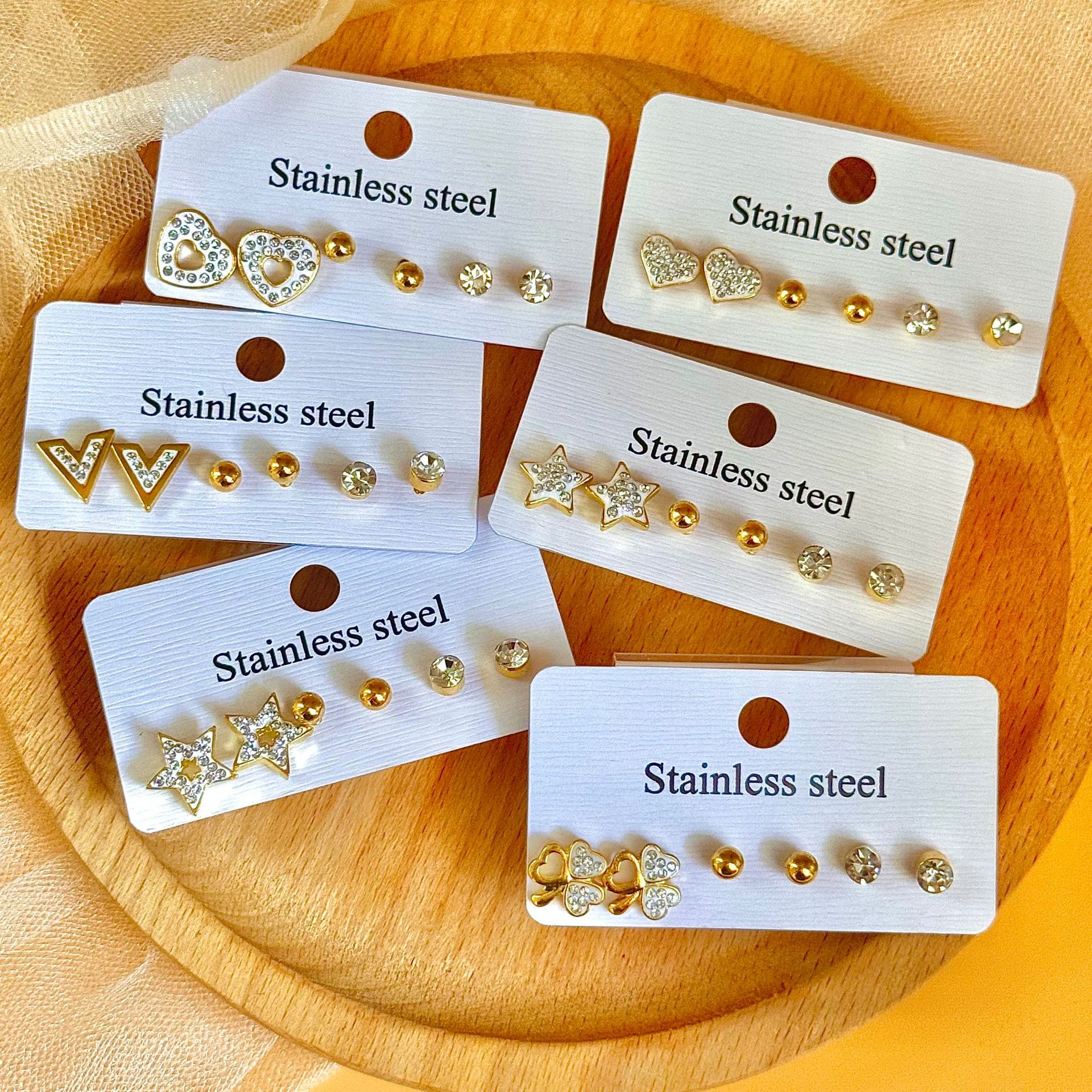欧美跨境3套装耳钉精致爱心蝴蝶组合耳环气质女士不锈钢耳饰纸卡