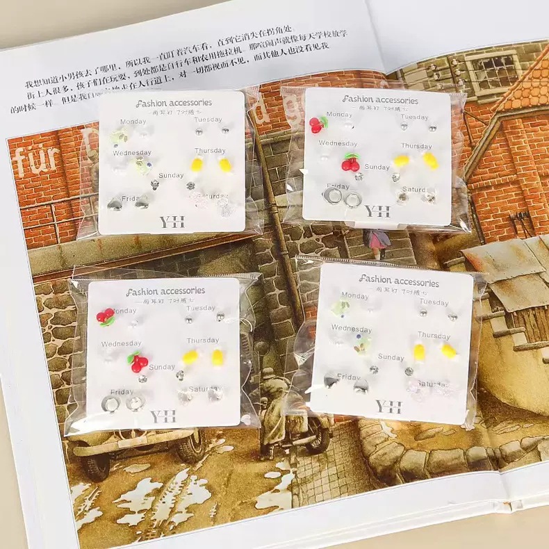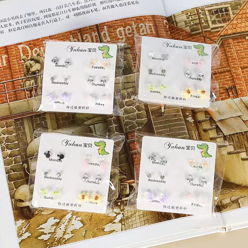 保色ピアス七対装一週間イヤリングセットイヤリングプレゼント耳飾り誕生日プレゼント女の子の親友ピアス