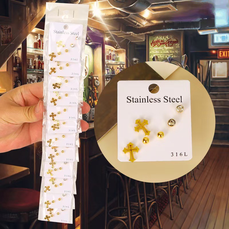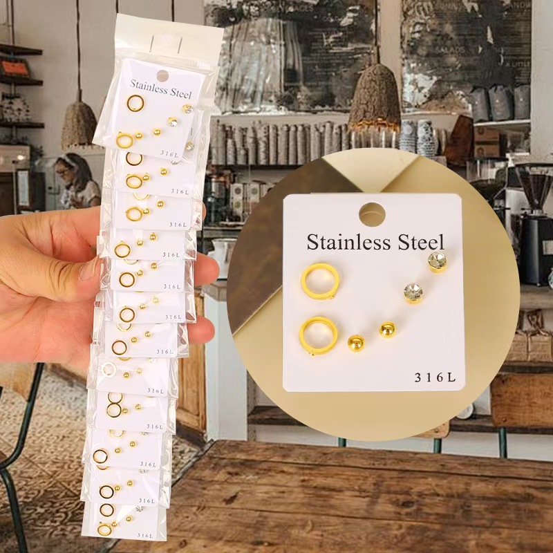 保色鋼釘ピアス三対セット一週間イヤリングセットイヤリングプレゼント耳飾り誕生日プレゼント女の子の親友