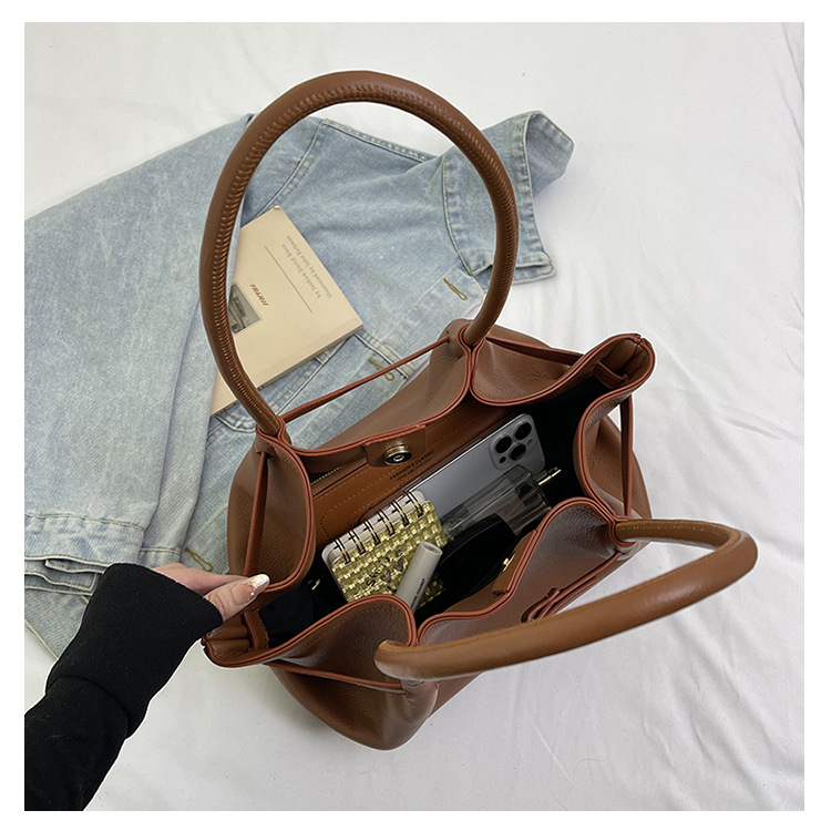 トレンディな無地の大容量小石模様のポータブル野菜バスケット Song.mont 義母バッグ バケットバッグ シングルショルダー クロスボディバッグ