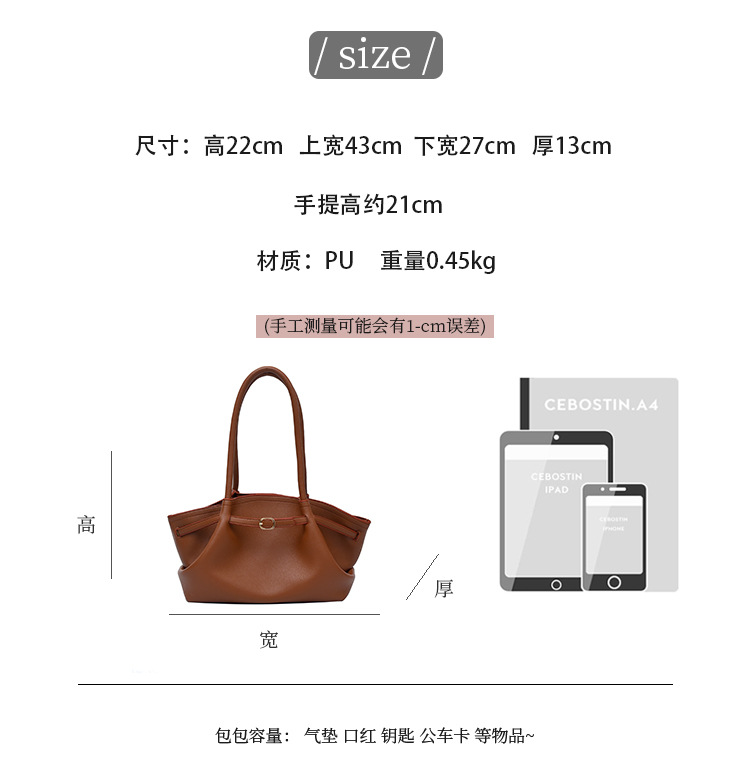 高级感复古大容量腋下包时尚机车风单肩包外出通勤洋气手提托特包