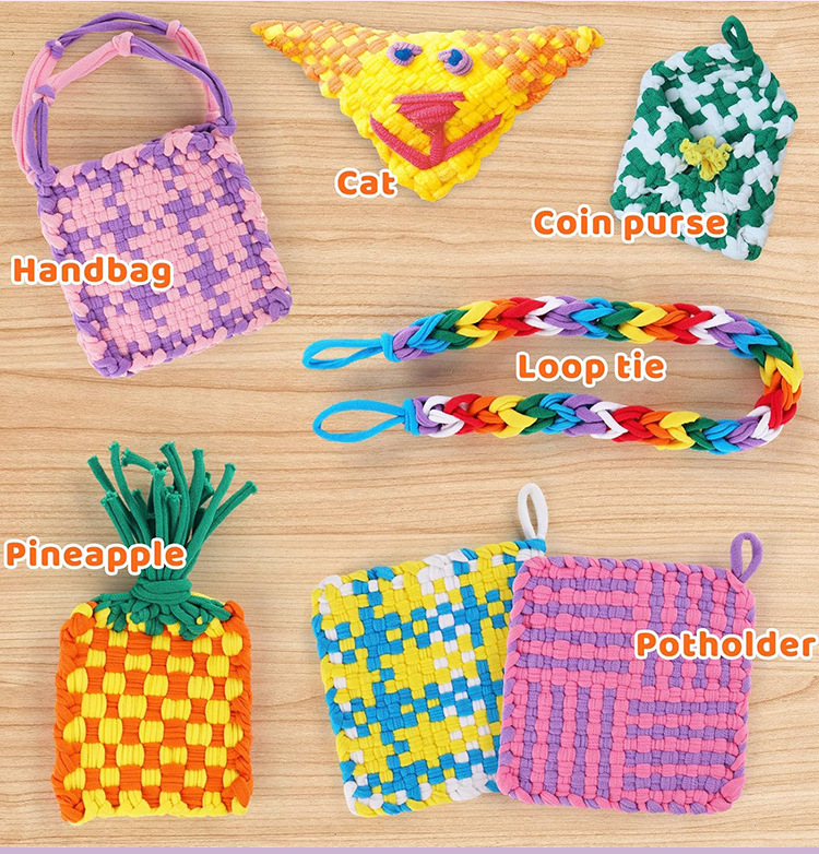跨境儿童益智diy弹力绳编织玩具 创意彩虹线圈织布机杯垫制作套装