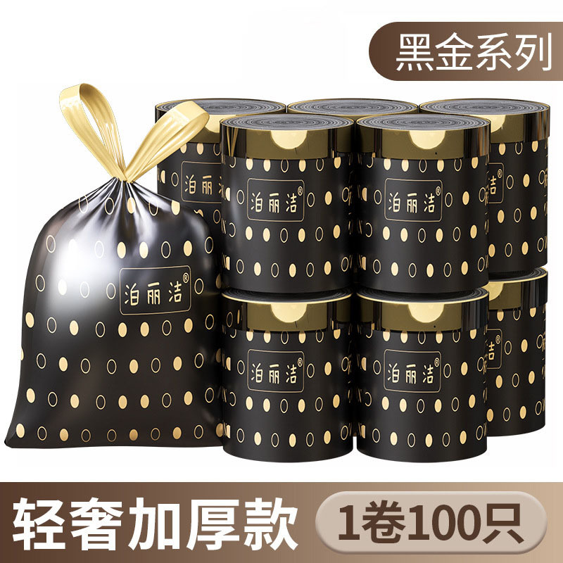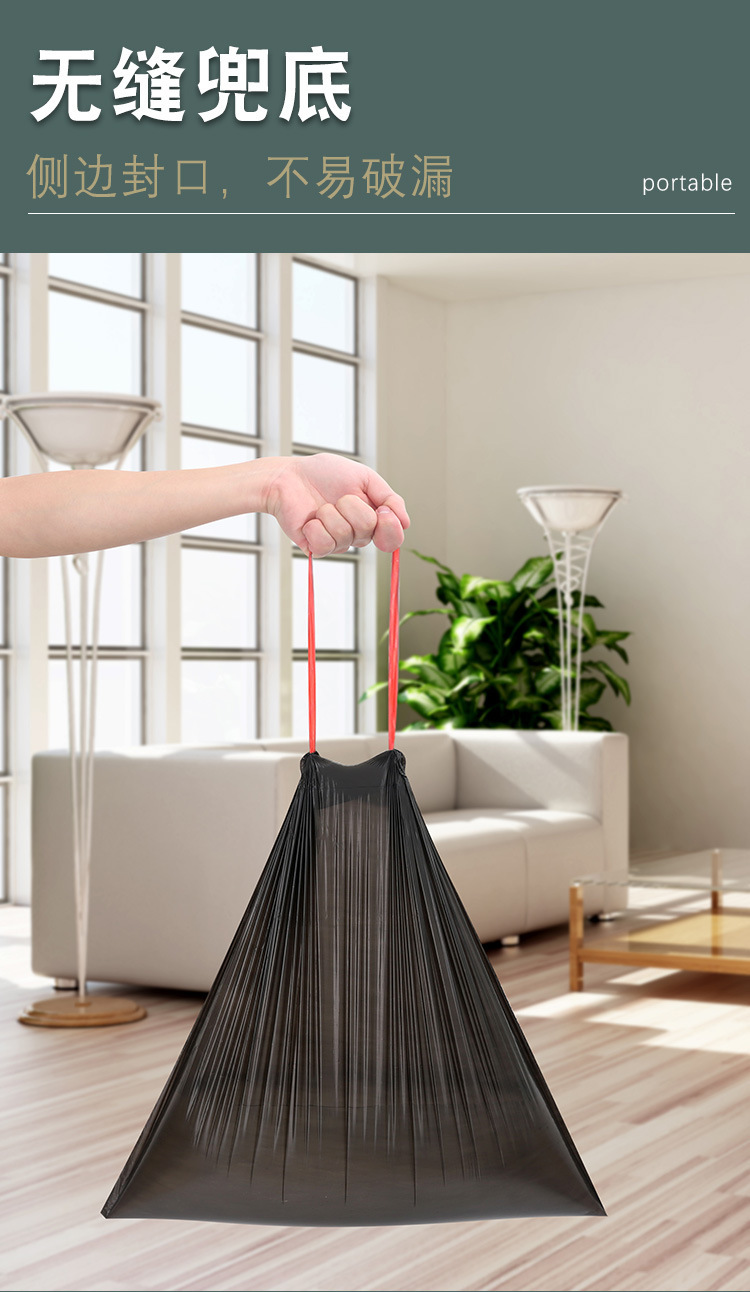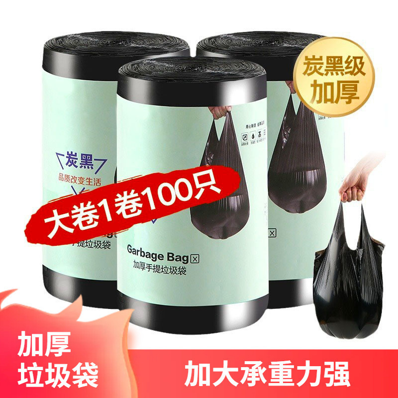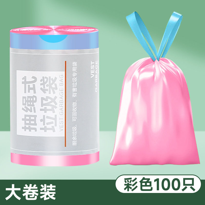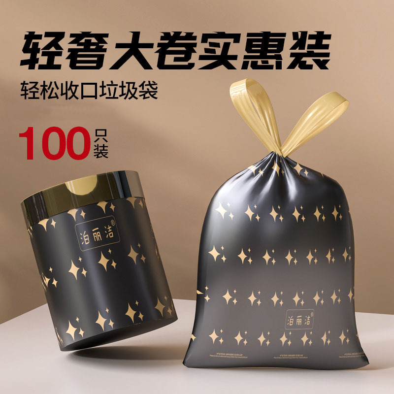 抽绳垃圾袋大卷100只加厚自动收口手提式塑料袋家用厨房垃圾袋子