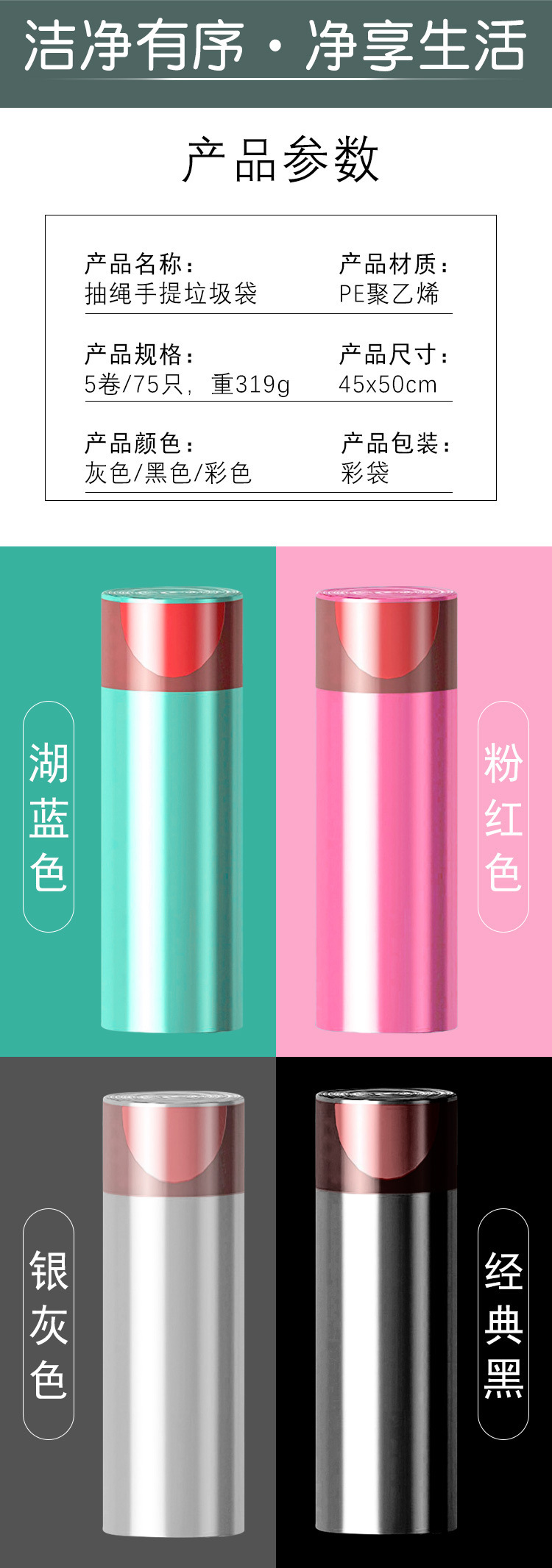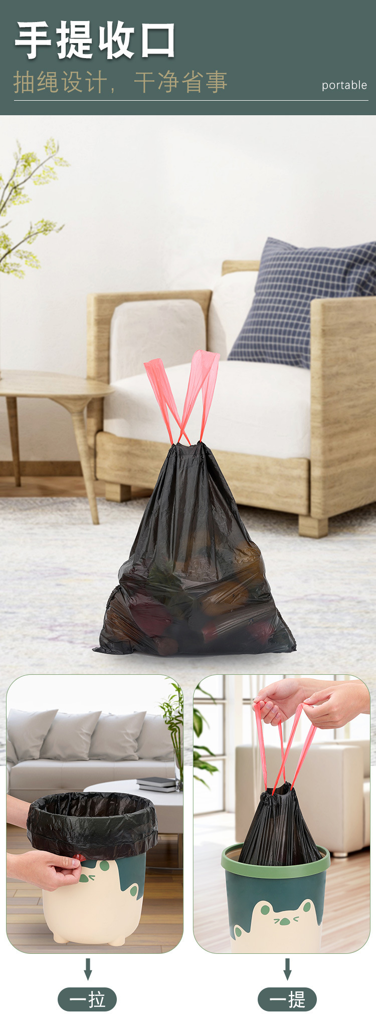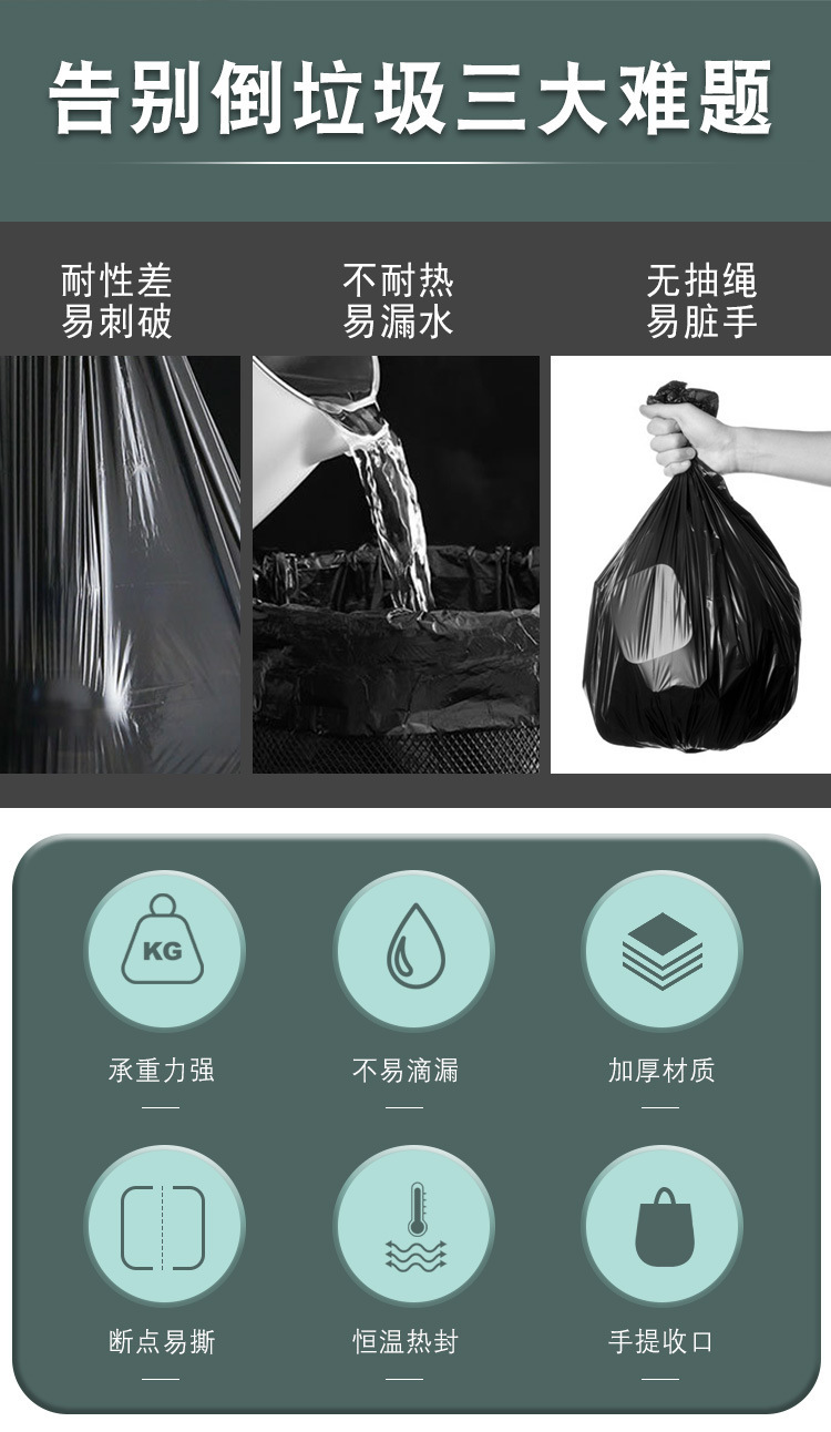 抽绳垃圾袋大卷100只加厚自动收口手提式塑料袋家用厨房垃圾袋子