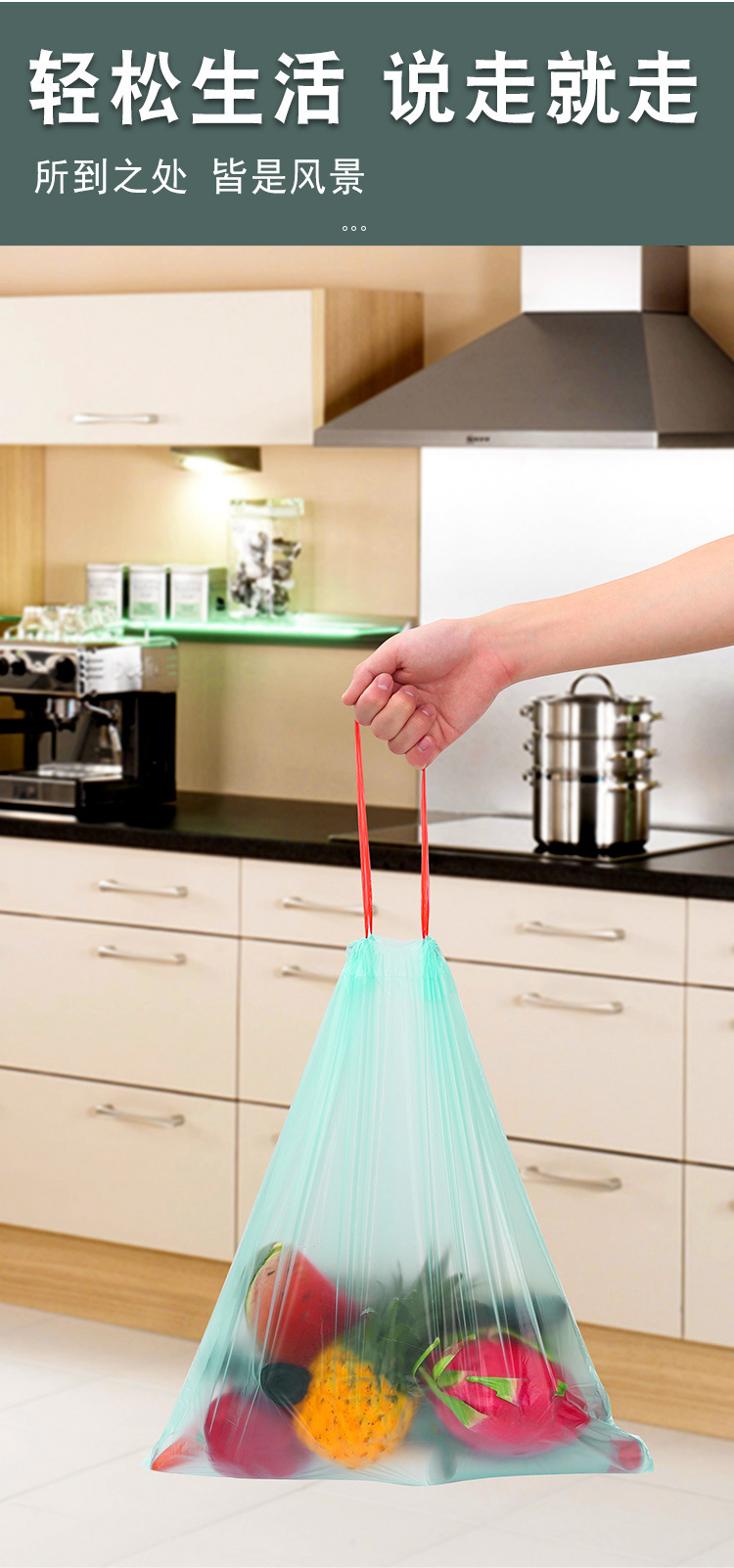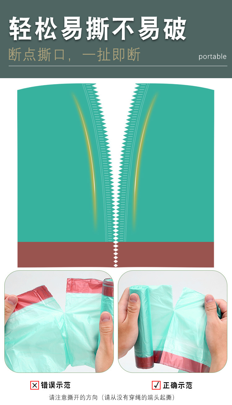 巾着ゴミ袋、厚みのある自動閉鎖ゴミ袋、ポータブルビニール袋、家庭用キッチン使い捨てゴミ袋