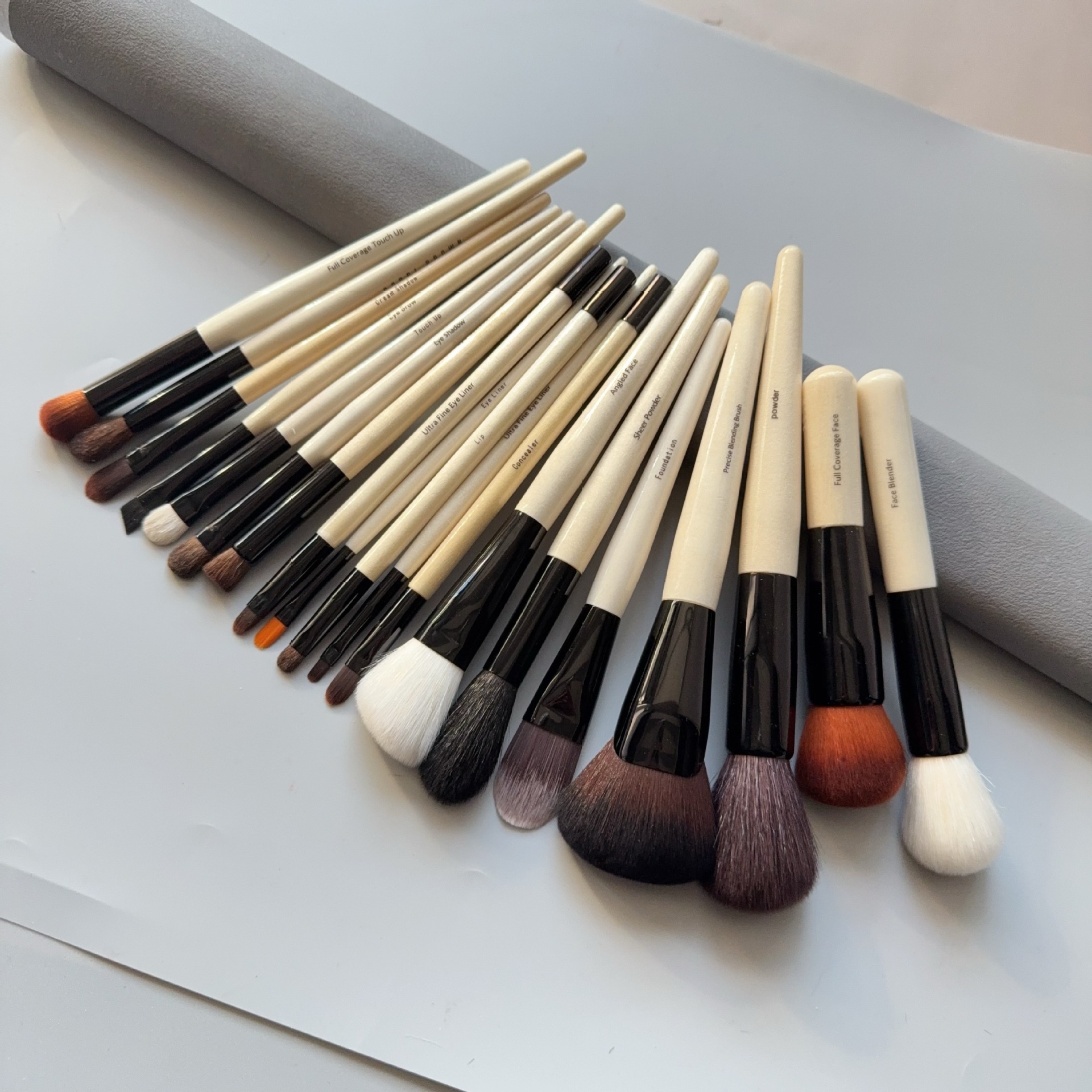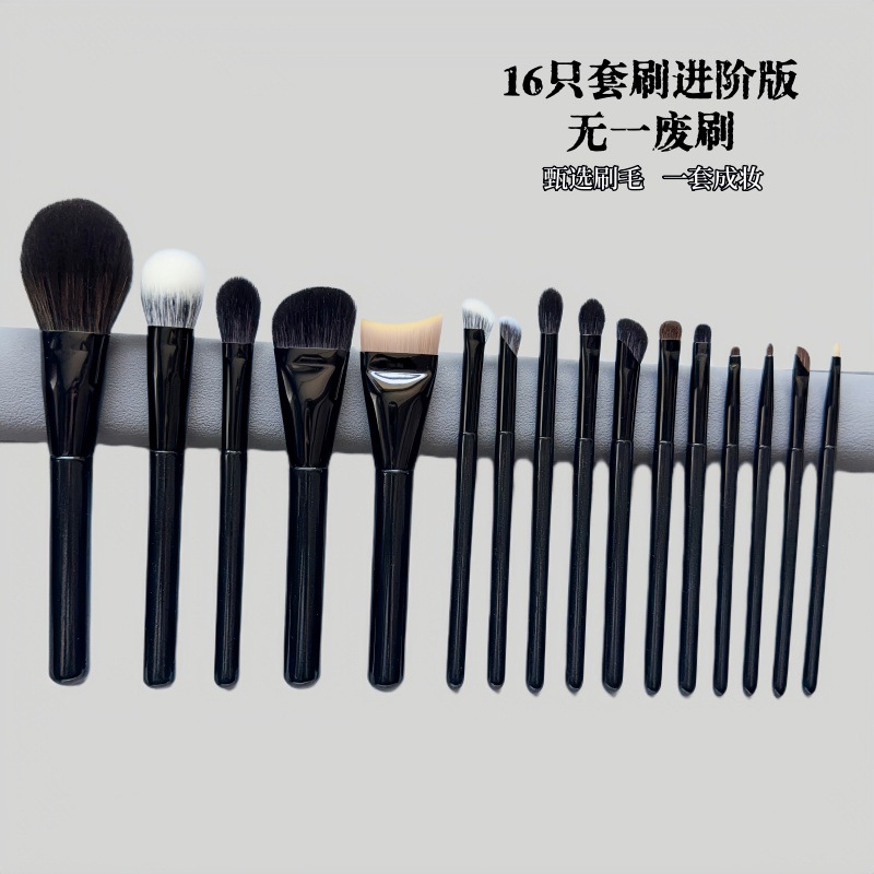 新しい16本メイクブラシセット、ルースパウダーブラシ、コントゥアリングブラシ、ファンデーションブラシ、ハイライターアイシャドウブラシ、初心者メイクブラシ