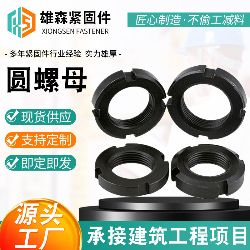 高強度 GB812 丸ナット 4 溝止めナット酸化黒炭素鋼溝付き丸ナット M10-M300