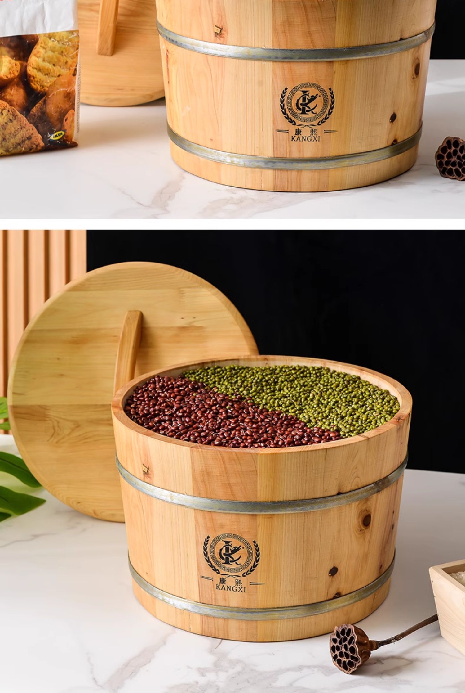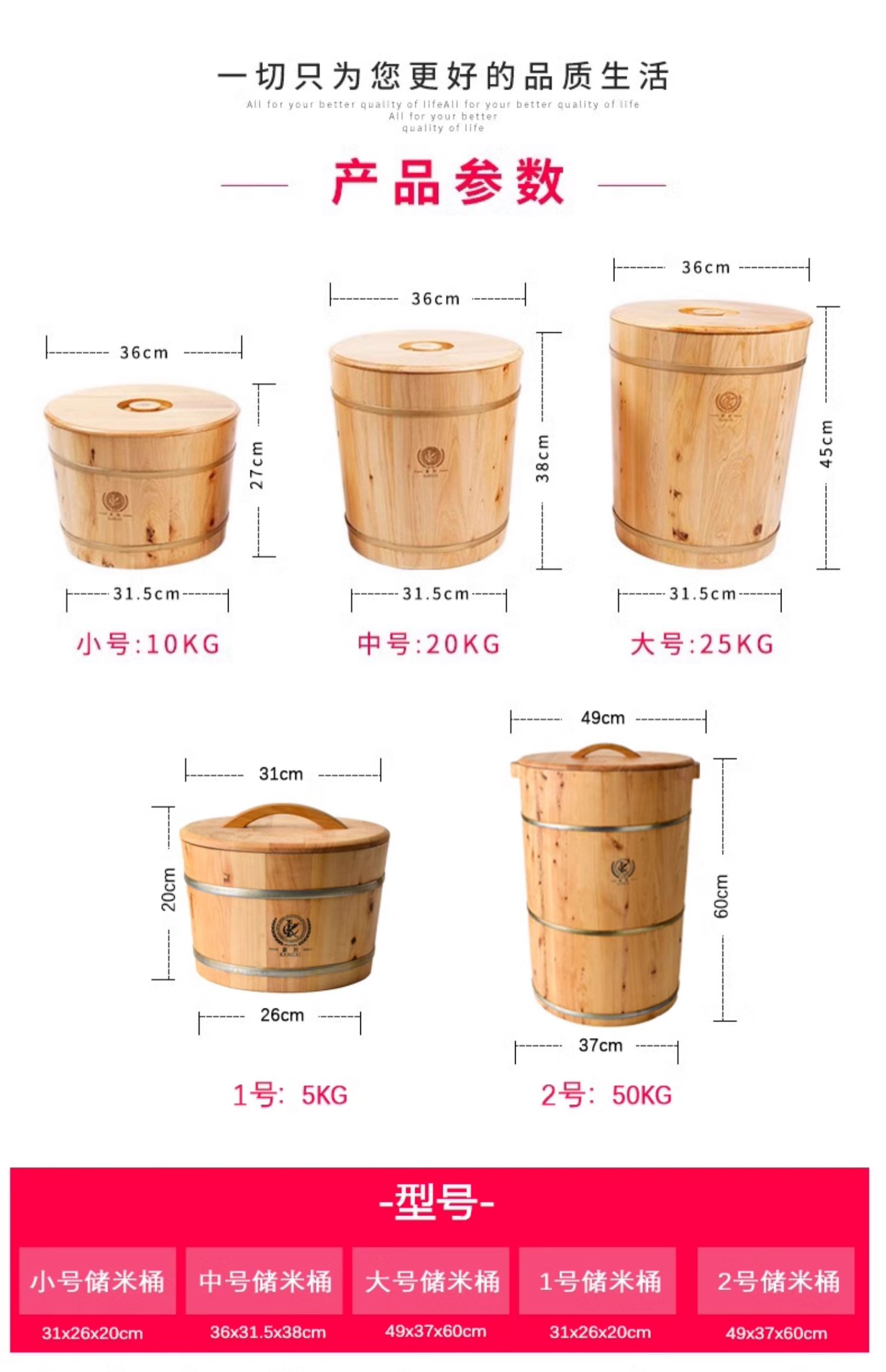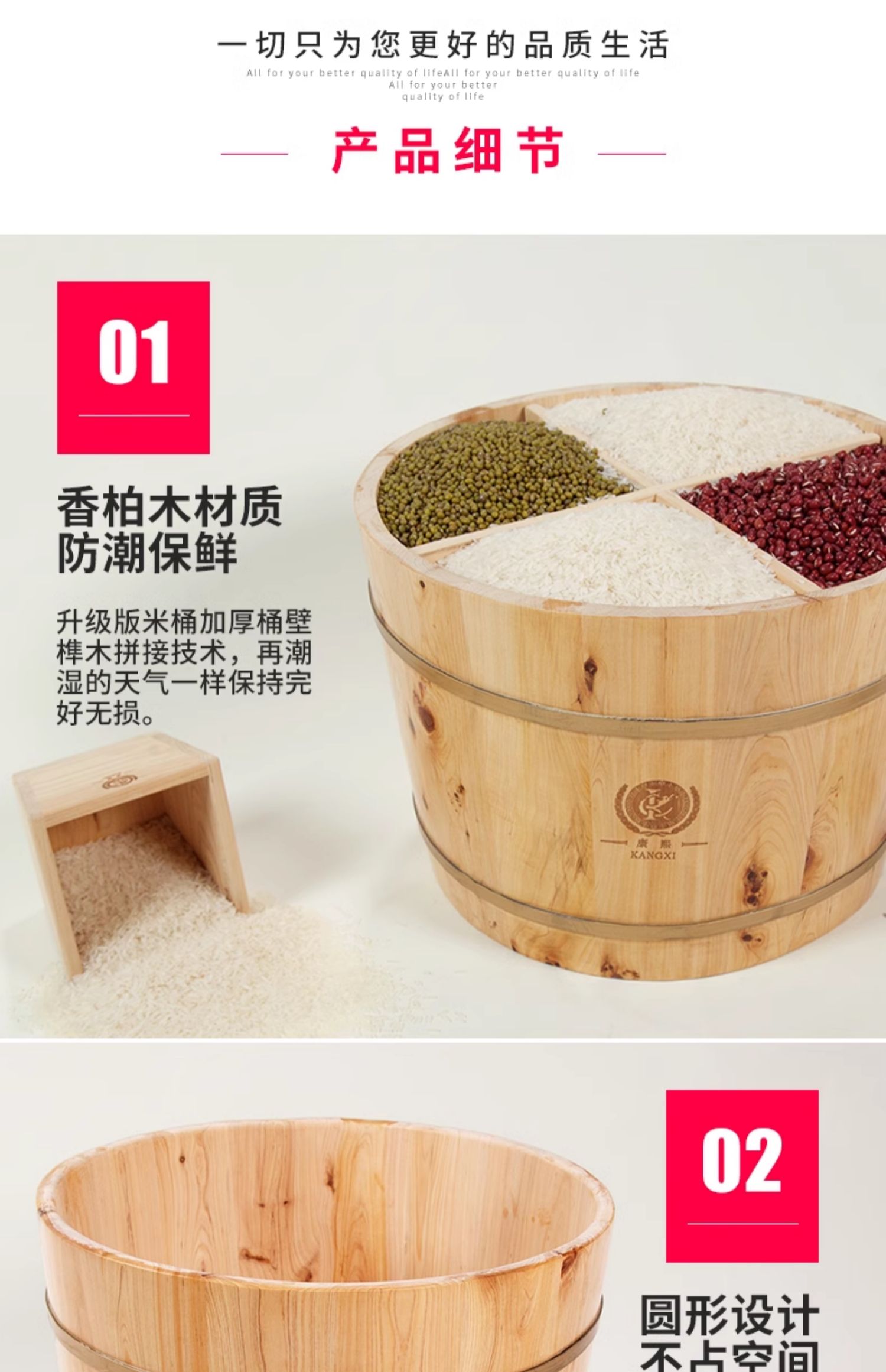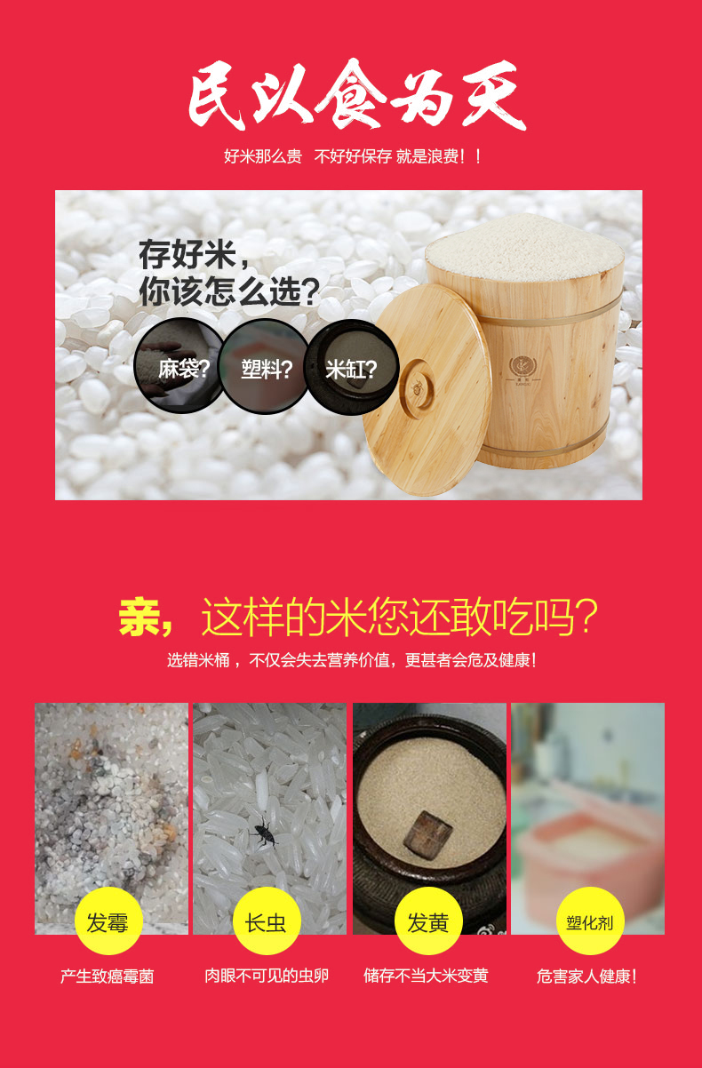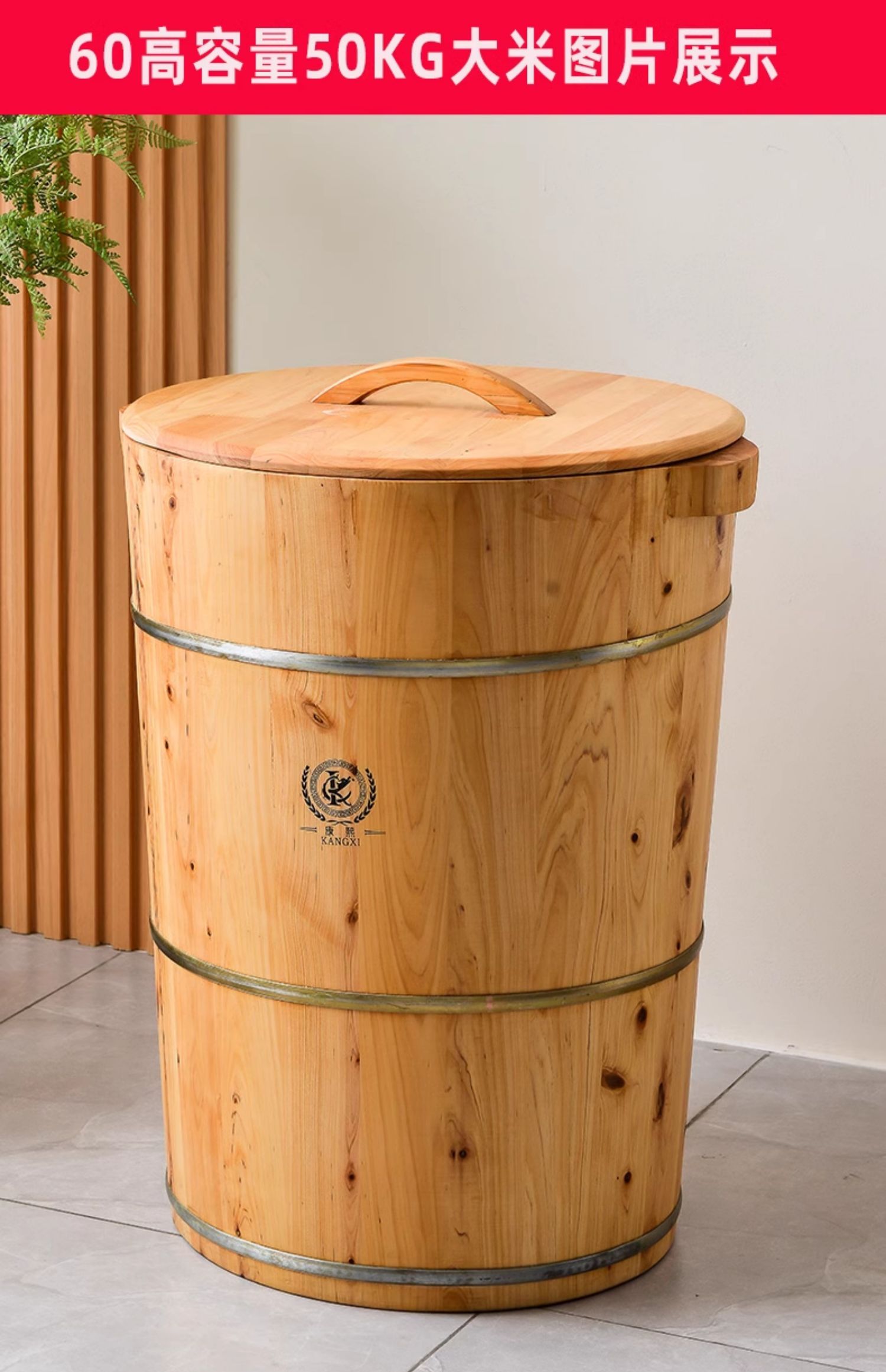 実木保存米桶保存米箱密封防虫防湿米シリンダー保存米桶20斤50斤王小祥