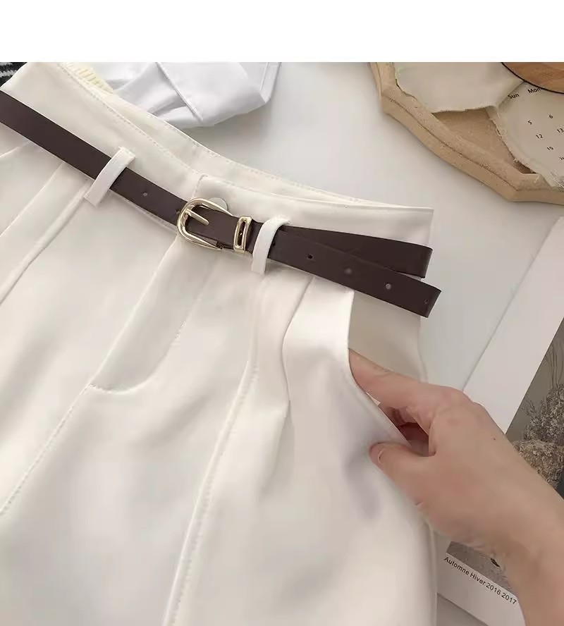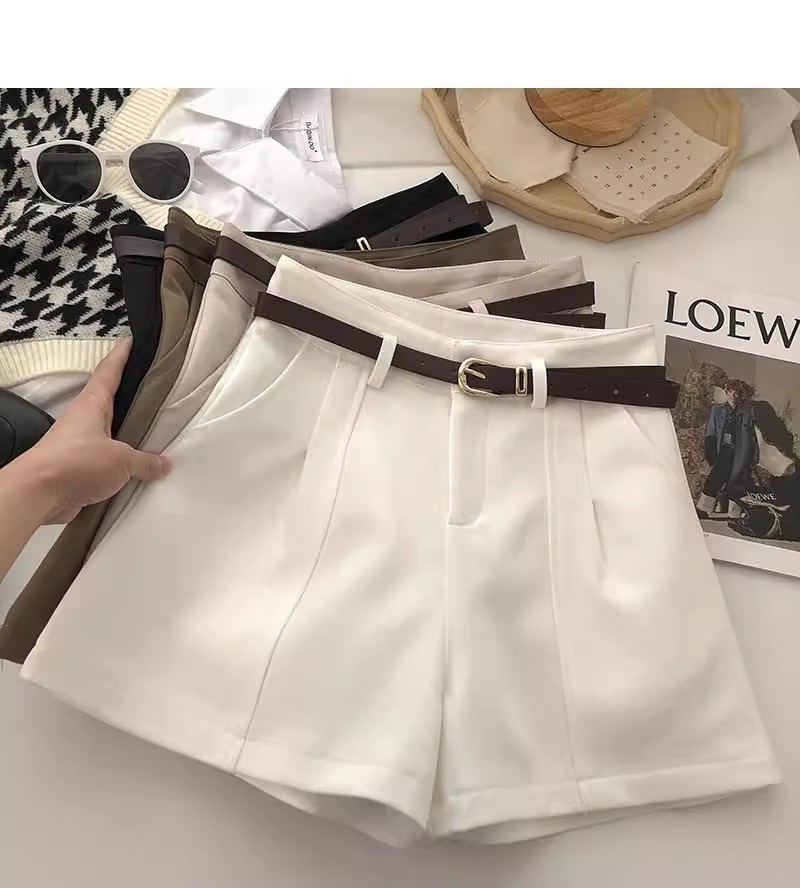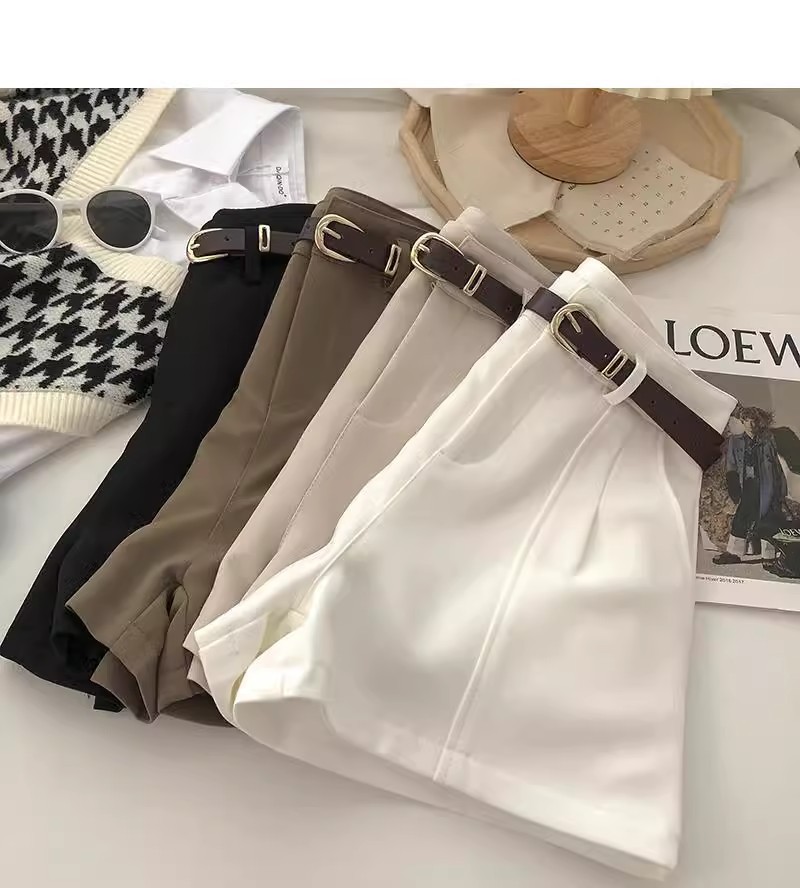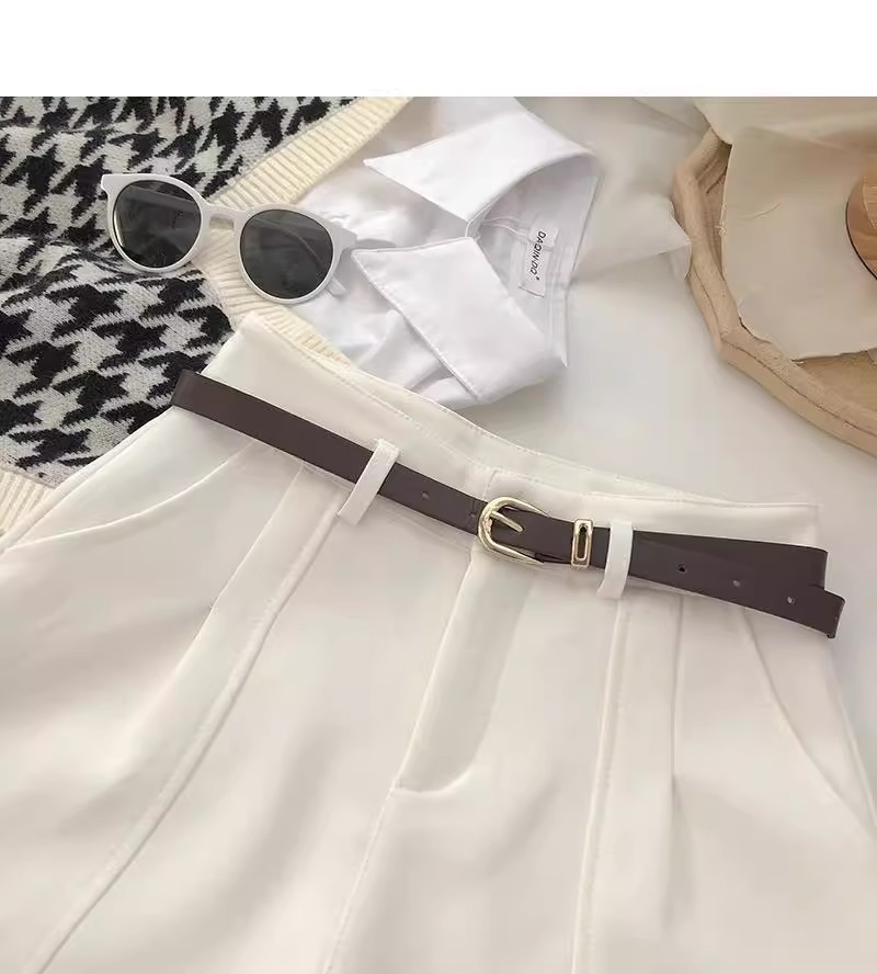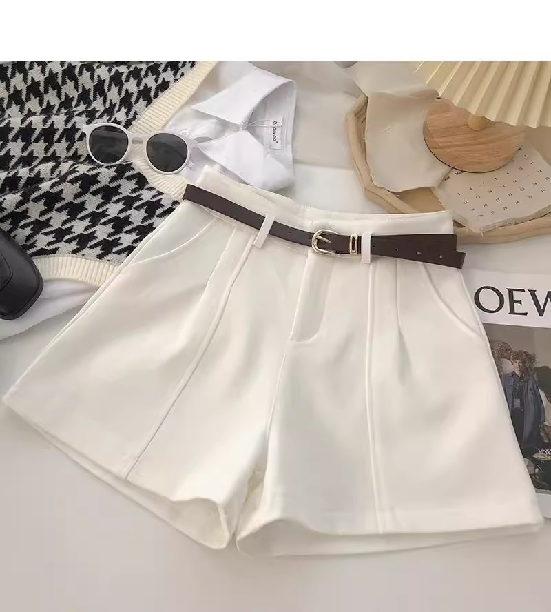 女性用ハイウエストホワイトショートパンツ2025春夏新作スーツワイドレッグパンツゆったり万能アウターファッションカジュアルパンツ