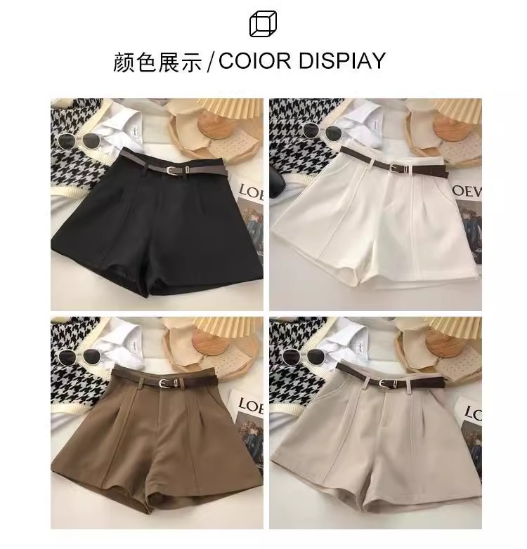 スーツの半ズボンの女性の春の新型の港の味のレトロでシンプルなa字のズボンのハイウエストはやせていてゆったりしています。