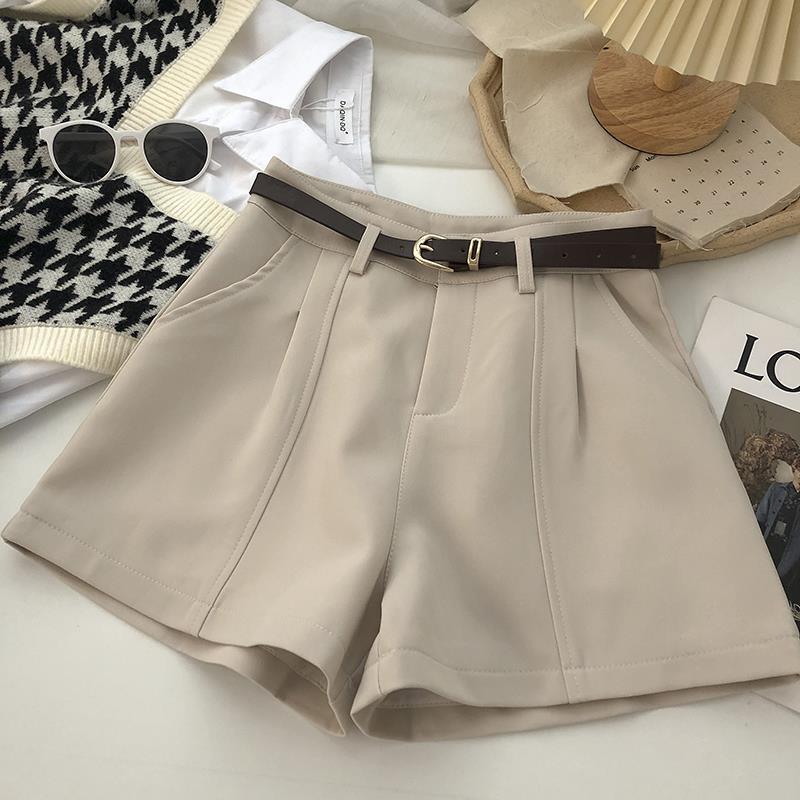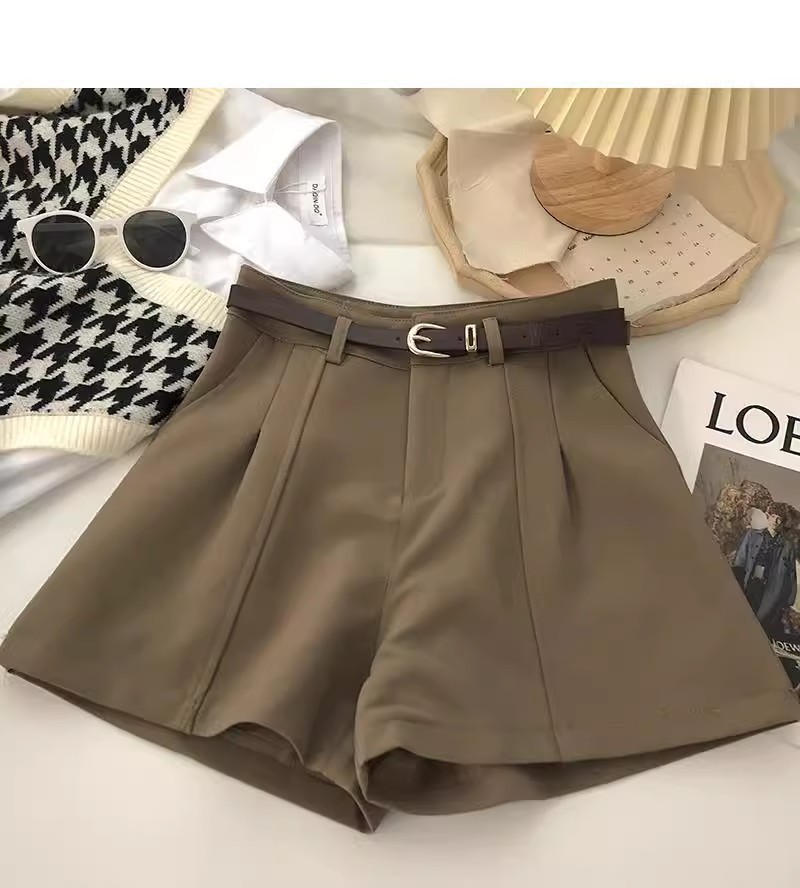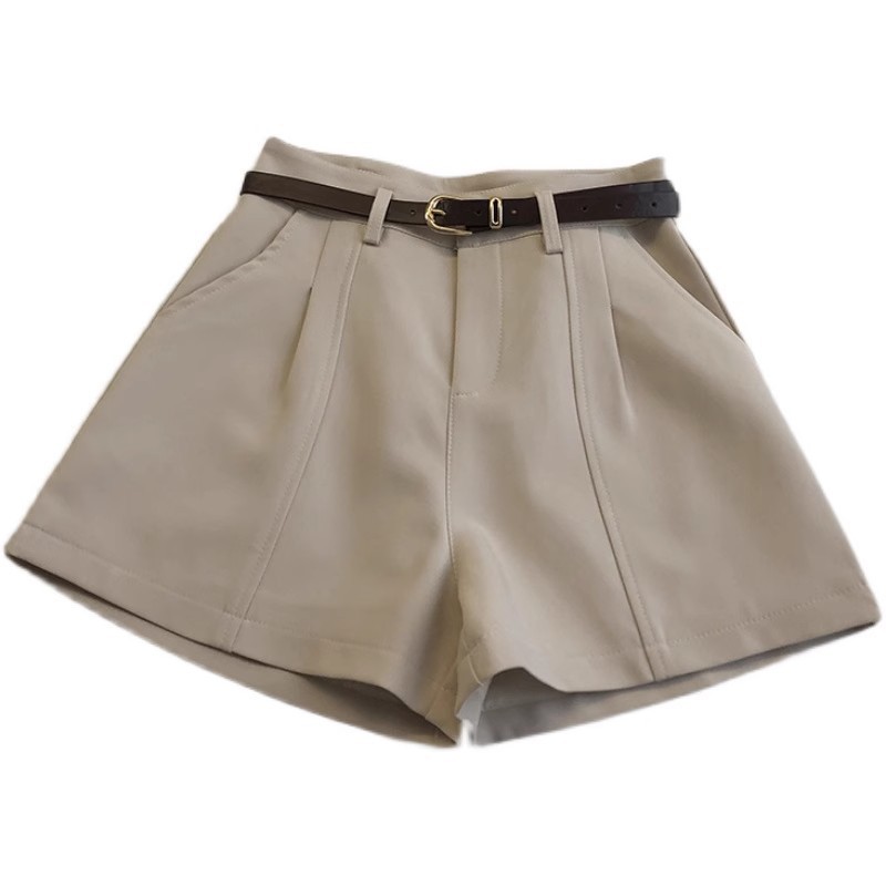 休闲短裤女2025年春xia季新款韩版ins港味复古简约外穿高腰a字阔