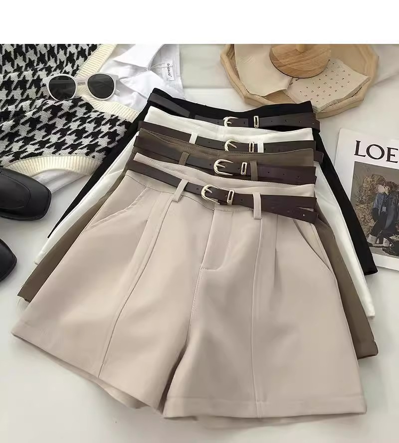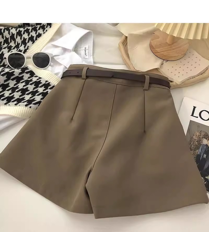 2026年春新作 レディース カジュアルショートパンツ 韓国風 ins風 香港風 レトロ シンプル ハイウエスト Aライン ワイドパンツ