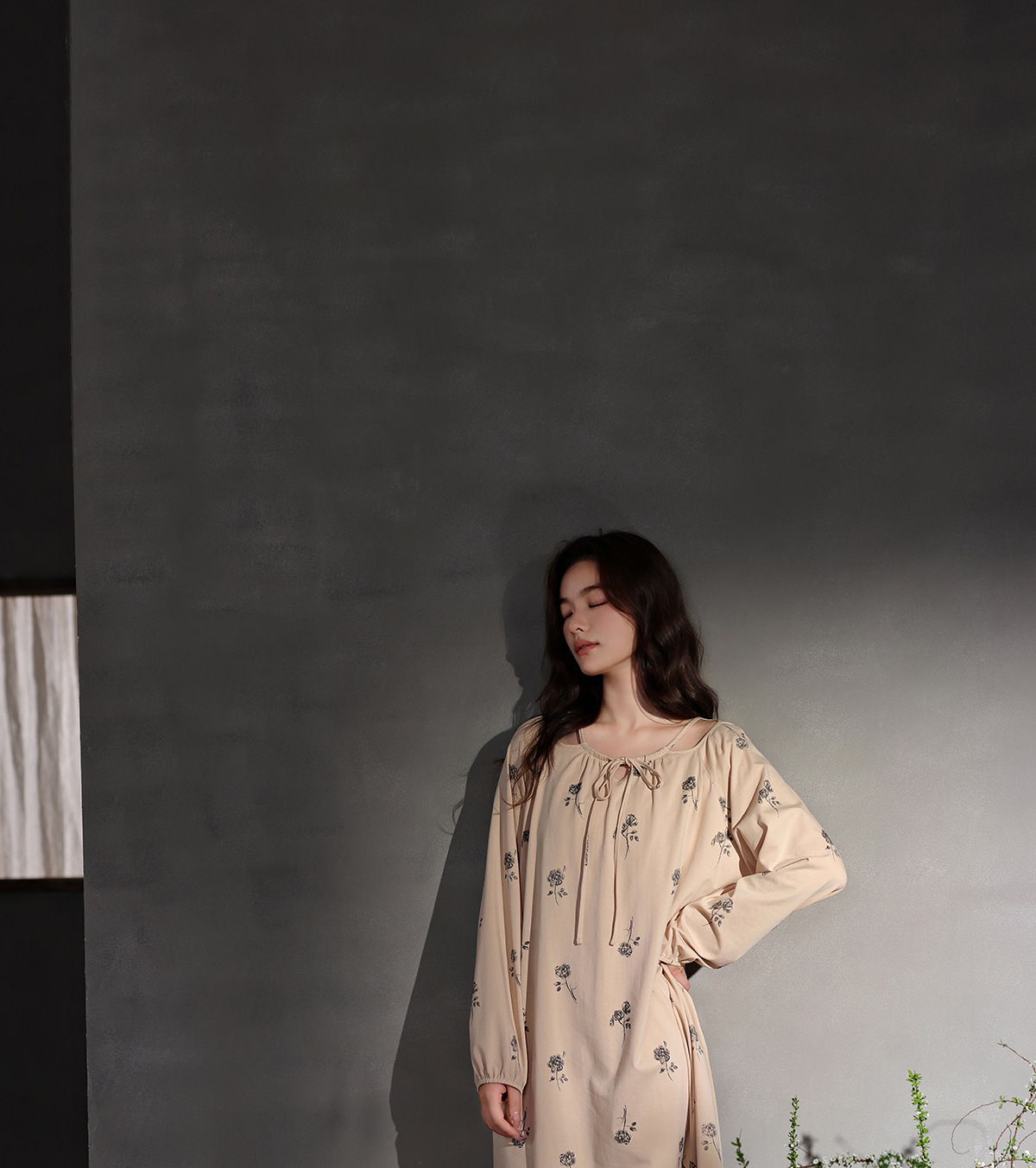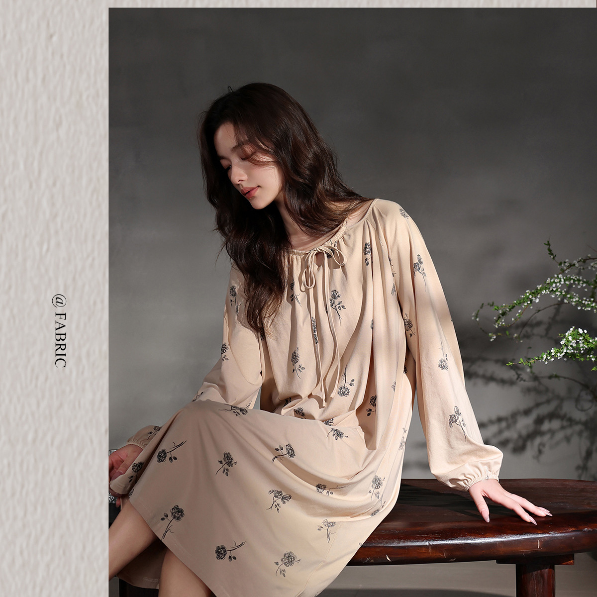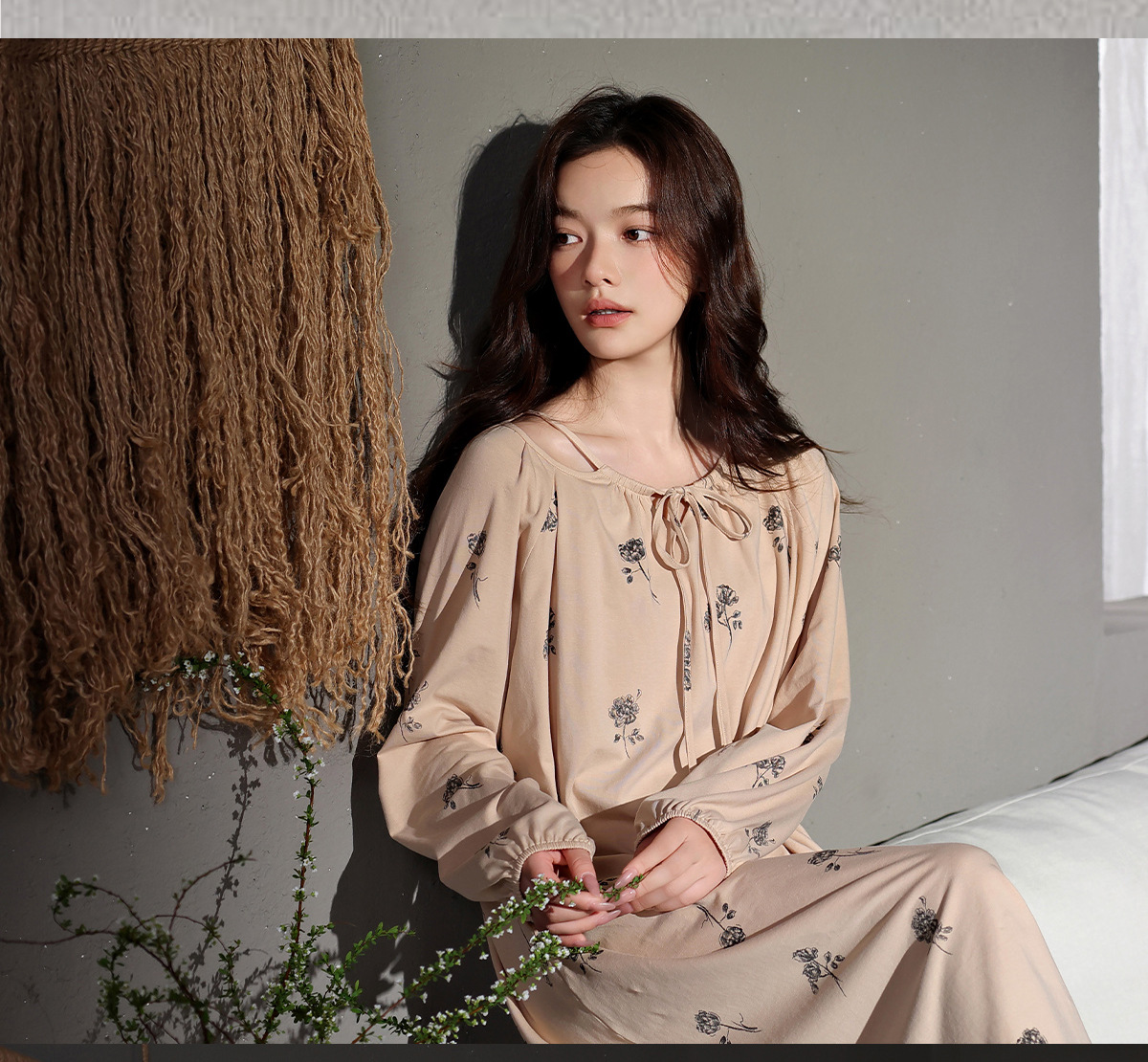 【超ソフト】リラックスモーダルロングナイトガウン、女性用高級パジャマ、春秋長袖ホームウェア、大きいサイズ
