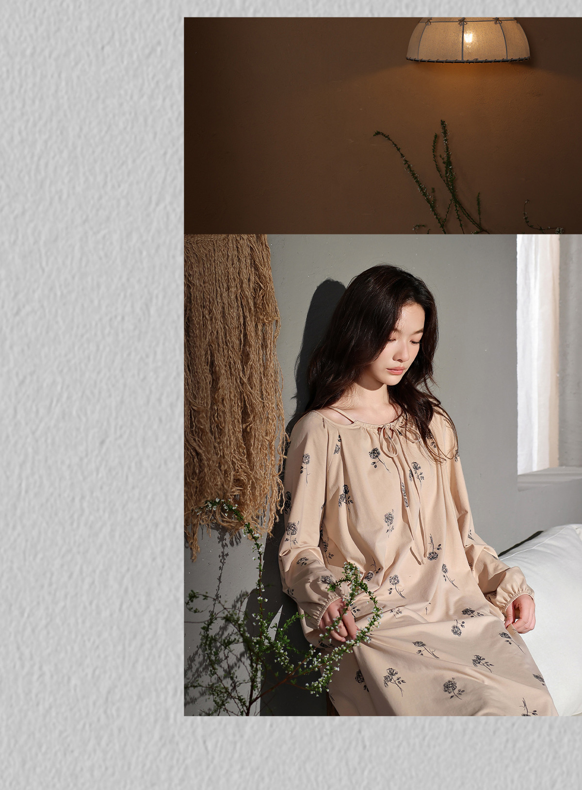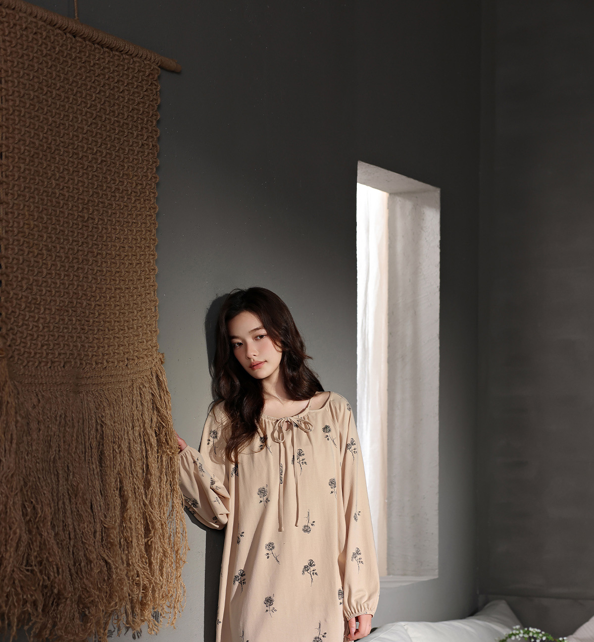 [スーパーソフト]秋の女性用の新しいシンプルなフレンチパジャマドレス、長袖モーダルルーズロングナイトガウン、薄手
