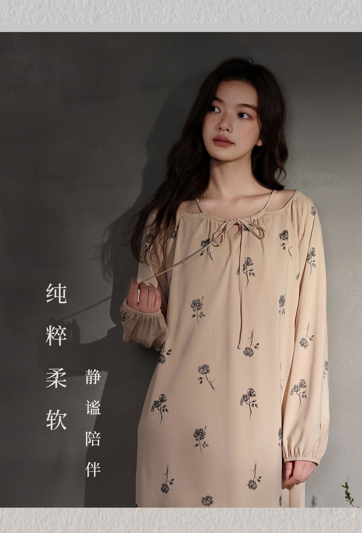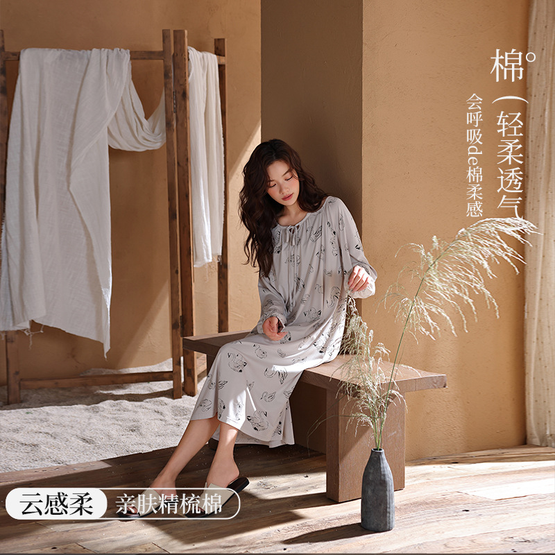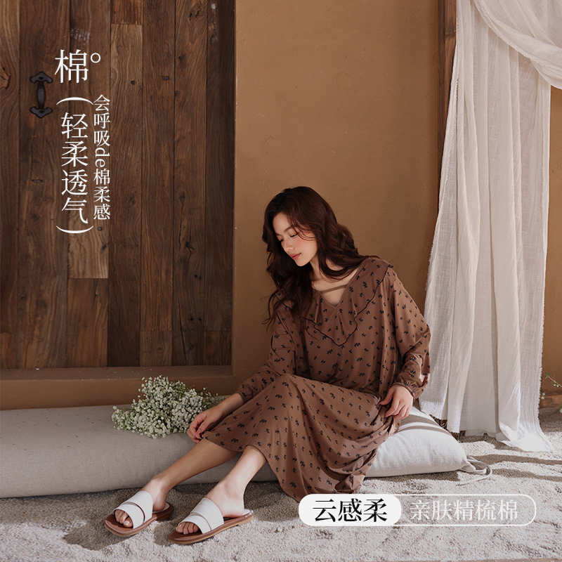 【柔感纯棉】春秋季睡裙女长款高级感法式风连衣裙长袖全棉家居服