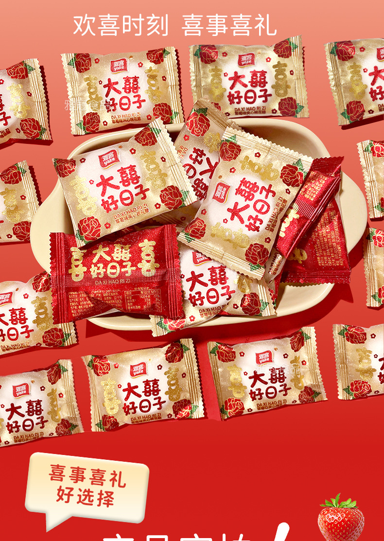 雅客大喜びの日いちごサンドイッチマシュマログミ高級結婚喜糖婚約キャンディー間食卸売り