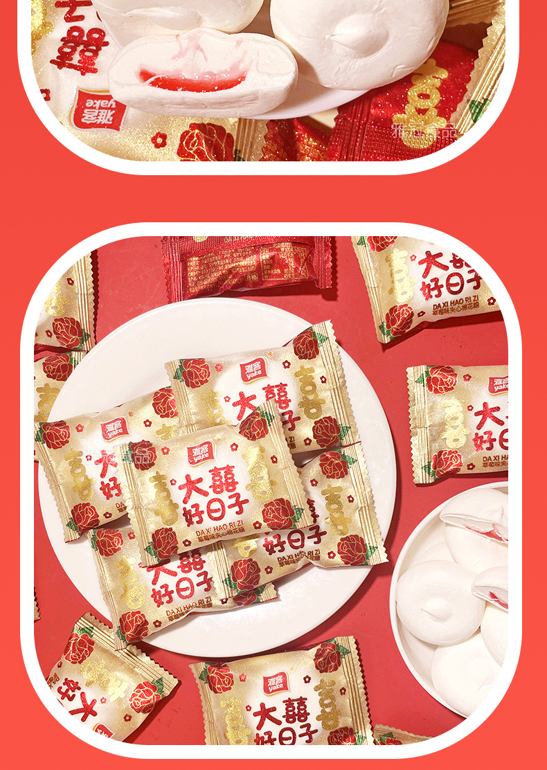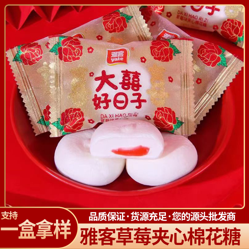 雅客草莓味夹心棉花糖大喜好日子散装结婚婚庆喜伴手礼内搭喜糖
