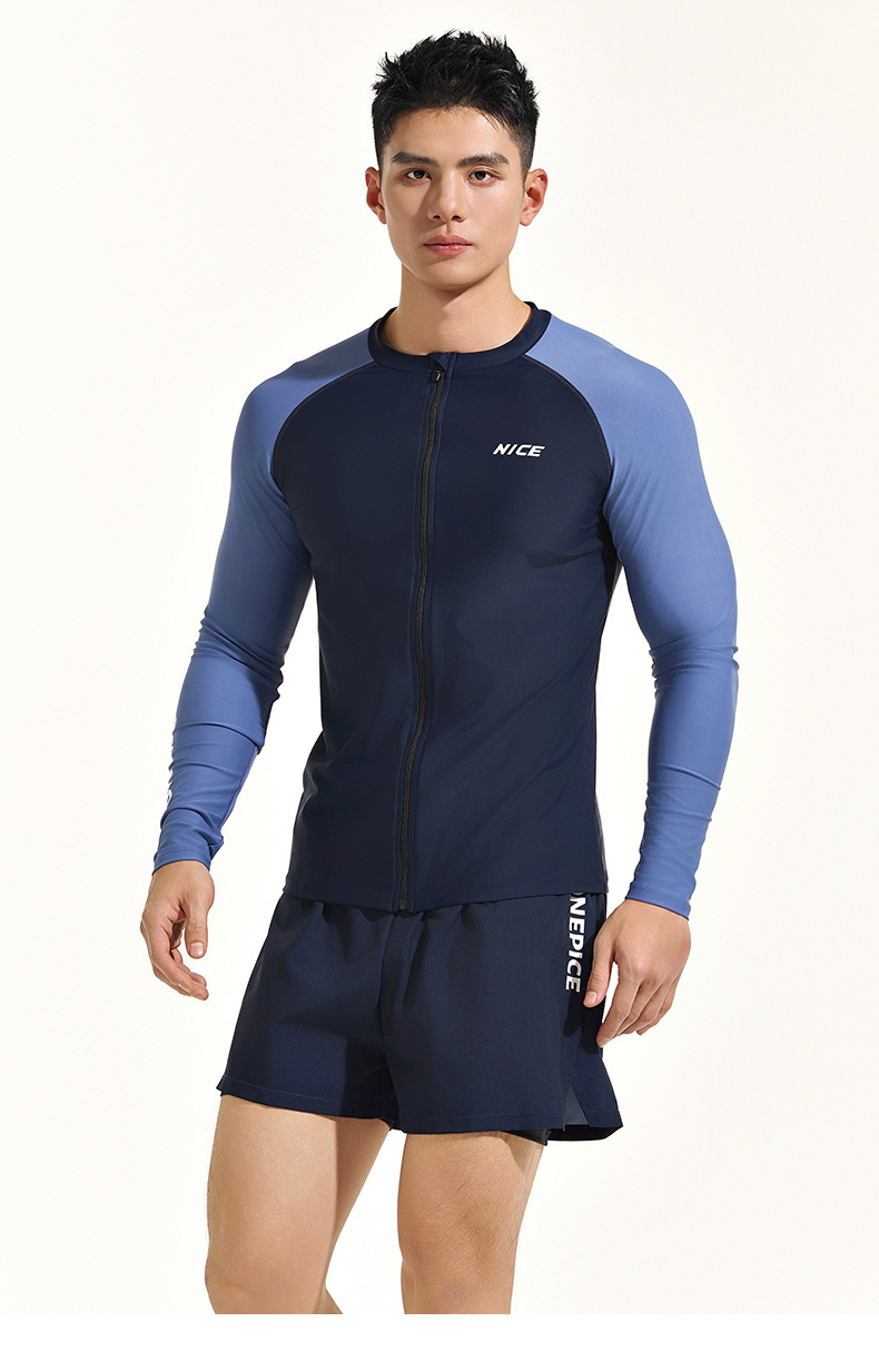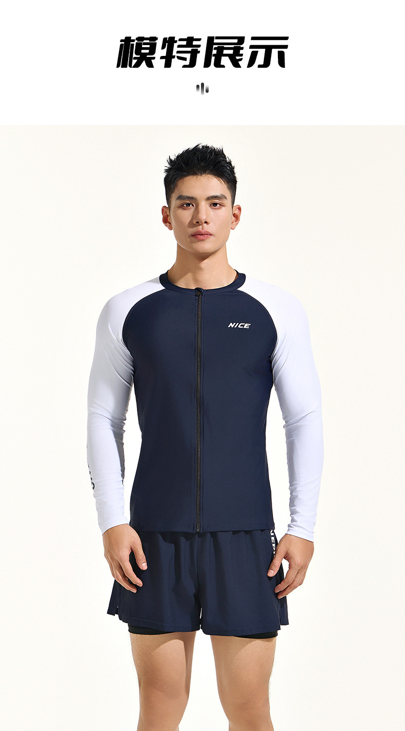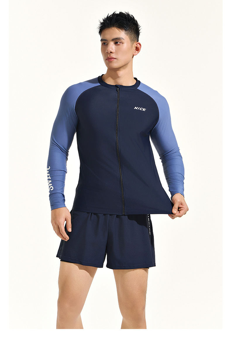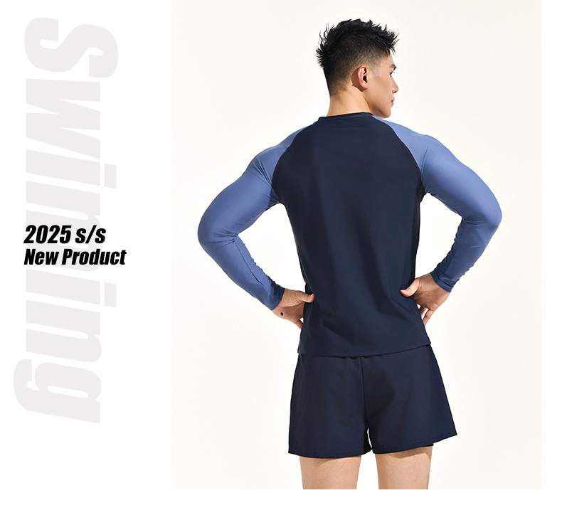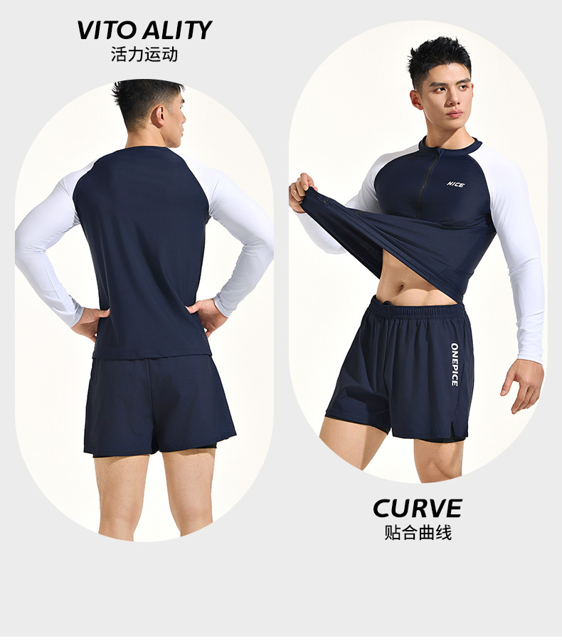 メンズ水着長袖日焼け止め速乾水着サーフィン服通気性スプリット大きいサイズ水泳パンツセットウェットスーツ水泳