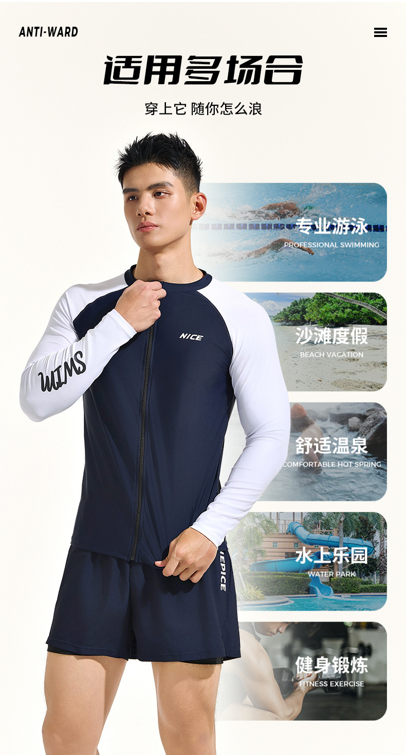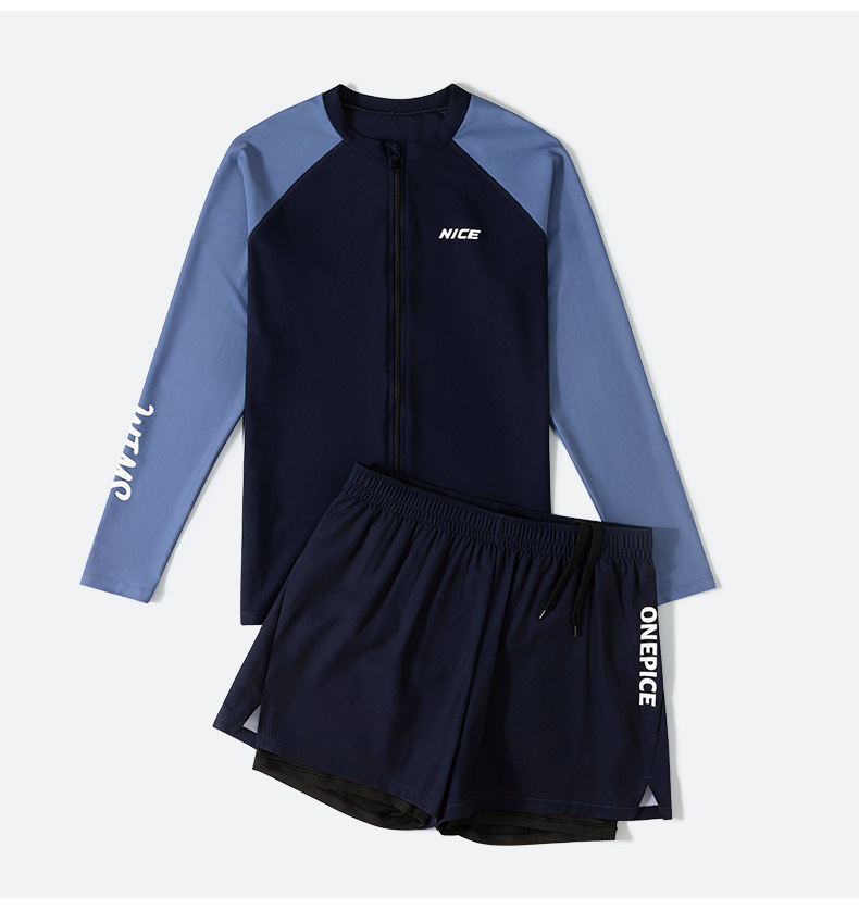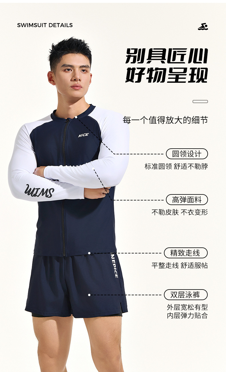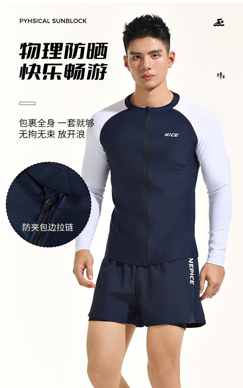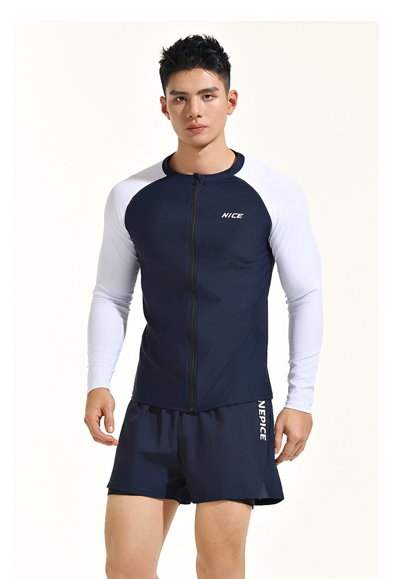 メンズ水着長袖日焼け止め速乾水着サーフィン服通気性スプリット大きいサイズ水泳パンツセットウェットスーツ水泳