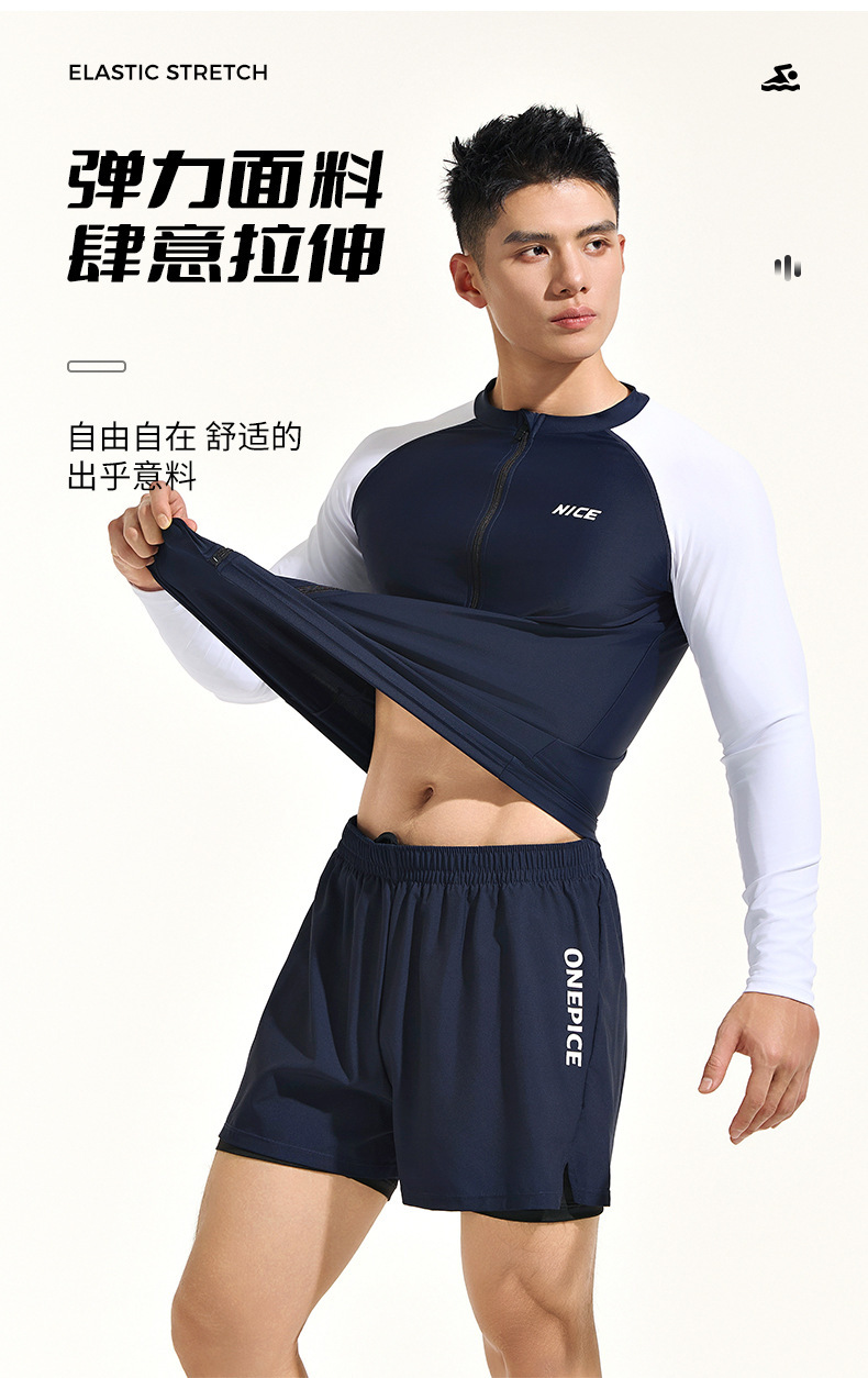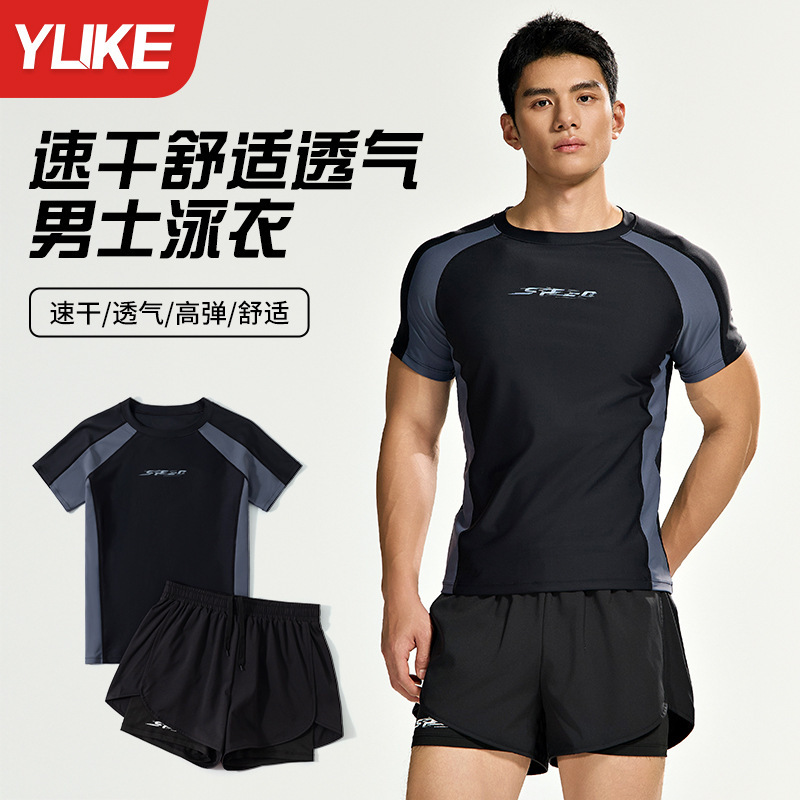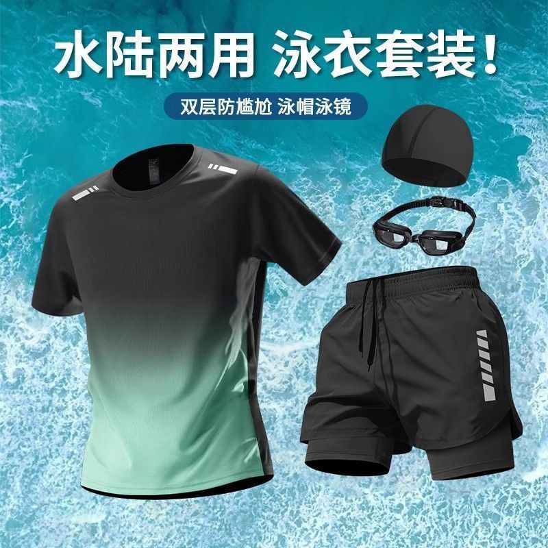 男士泳衣套装双层速干大码新款游泳裤防晒成人青少年全套游泳装备
