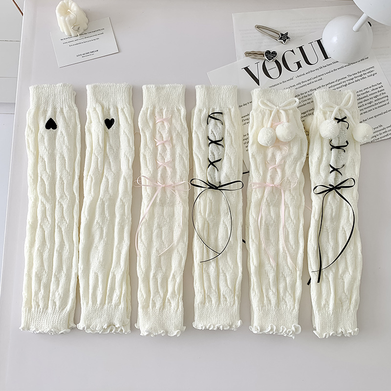 靴下の女性のかわいい毛球のふくらはぎのカバーlolitaの甘い愛の刺繍の袖のカバーの日系jkの毛糸のニットの靴下のカバー