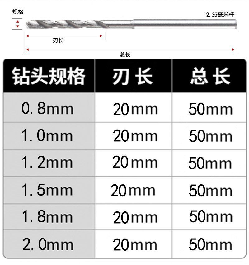 2.35mmの小さいドリルは延長して直径を変えます。