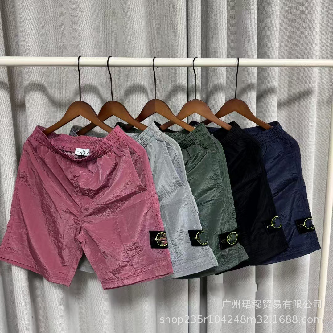 跨境外贸夏季石头徽章金属反光色尼龙短裤男街头潮流休闲户外短裤