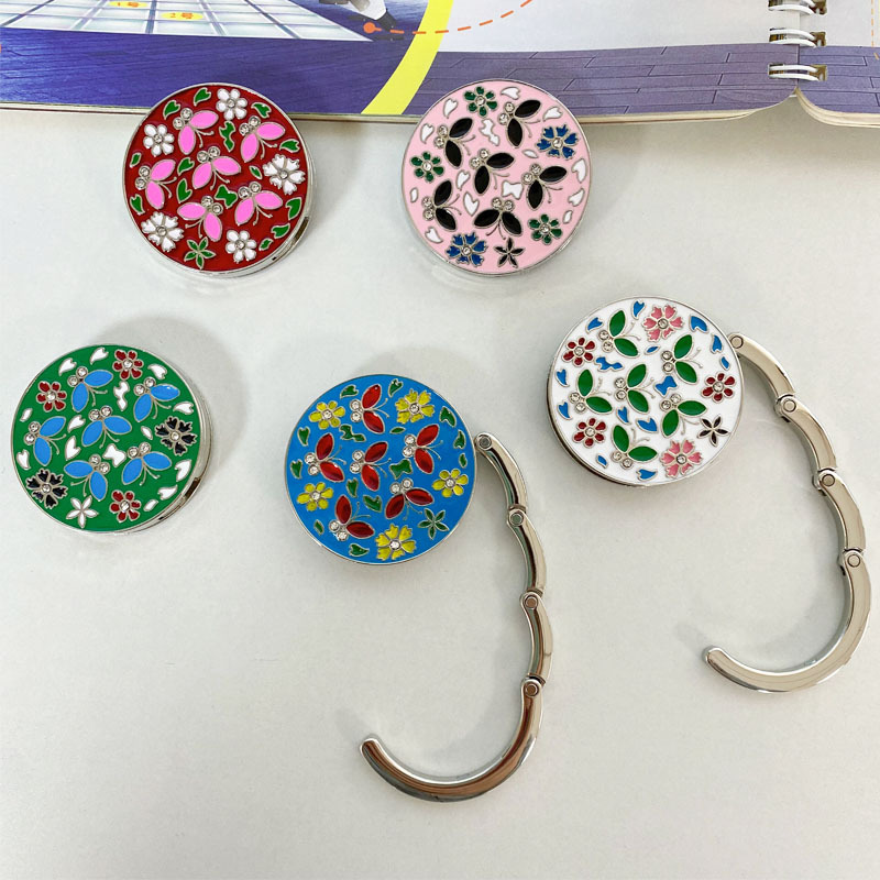 ラウンド折りたたみポータブル七宝油滴バッグフックポータブルバッグハンガーシームレス非粘着デスクトップバッグフック